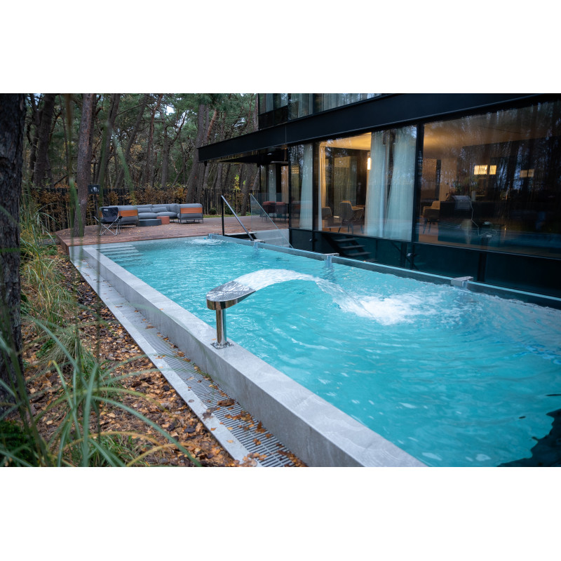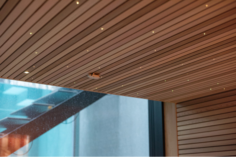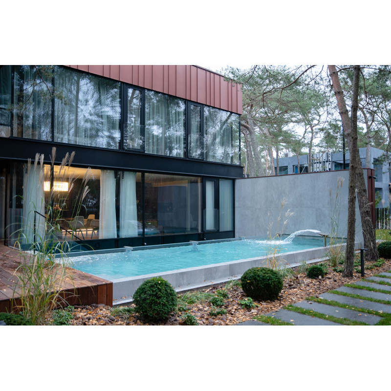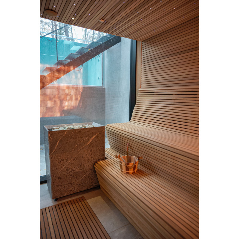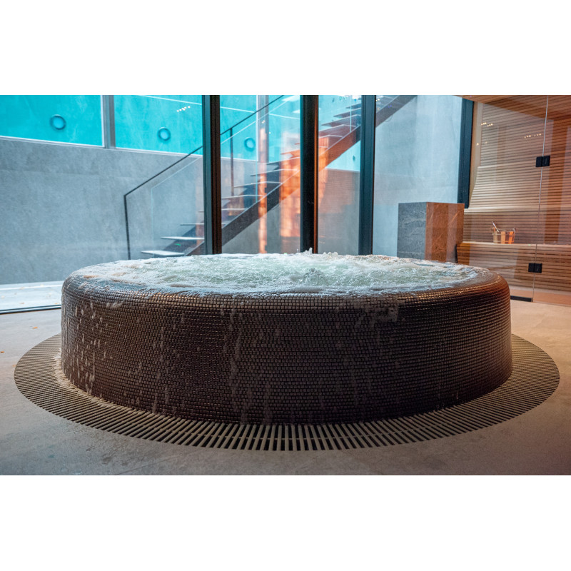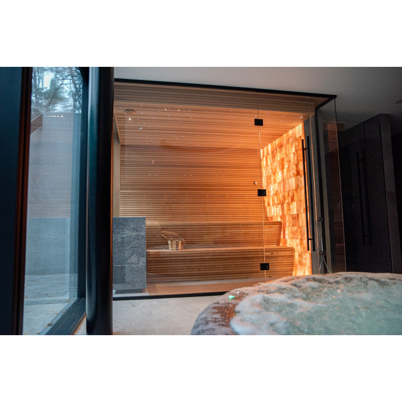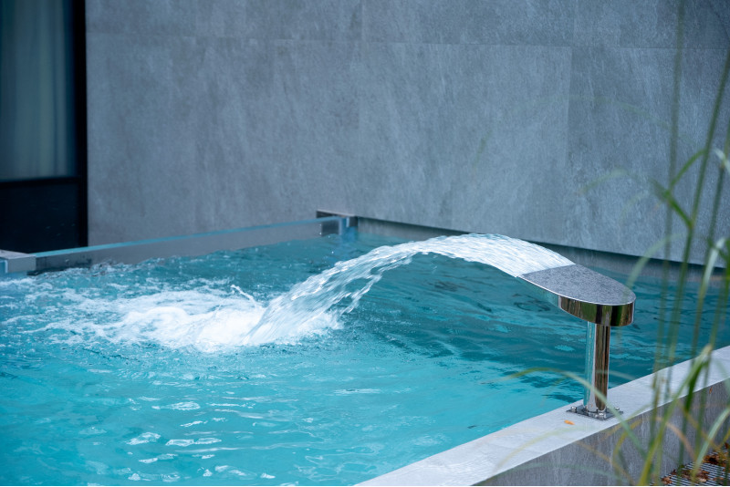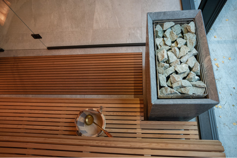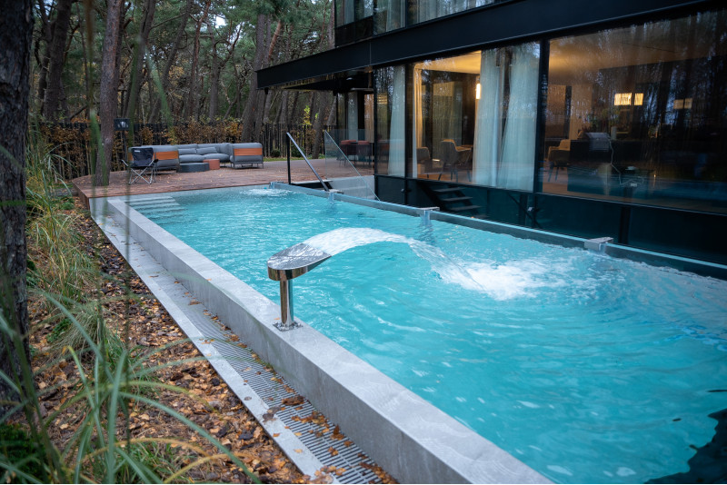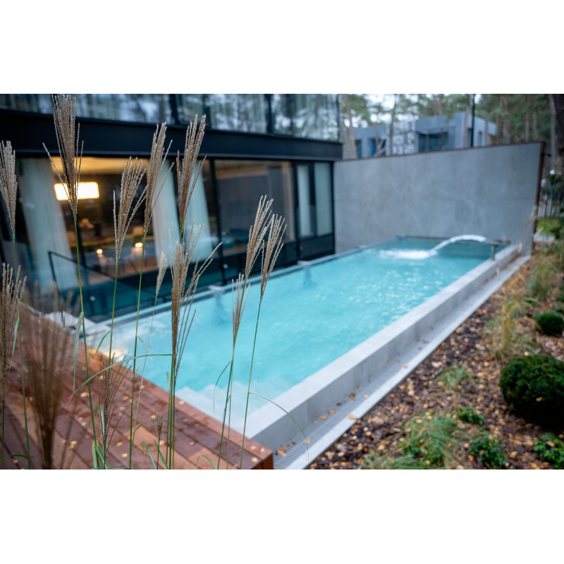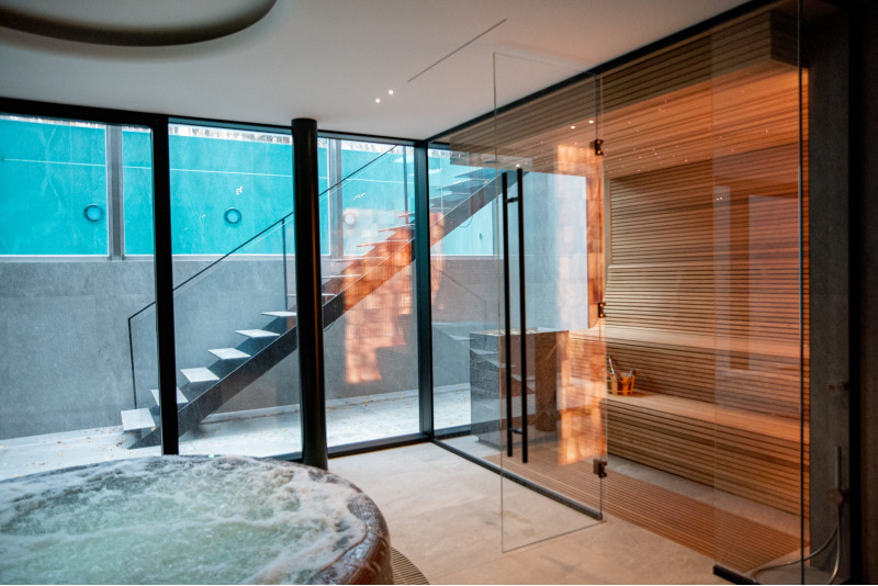 Individuellt projekt av bastu, utomhuspool, hällanordning och bubbelpool
