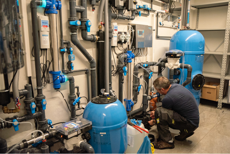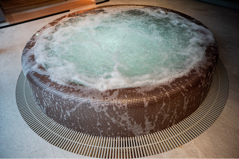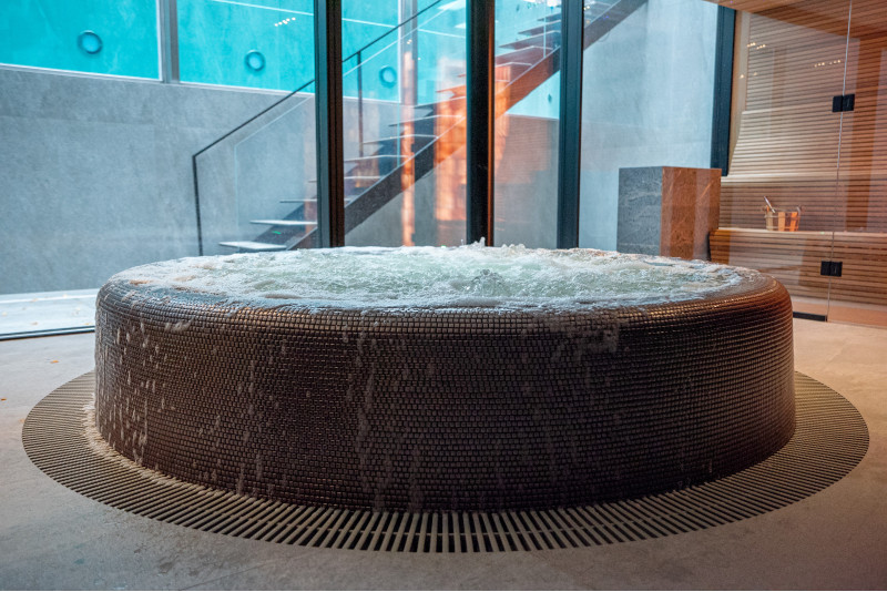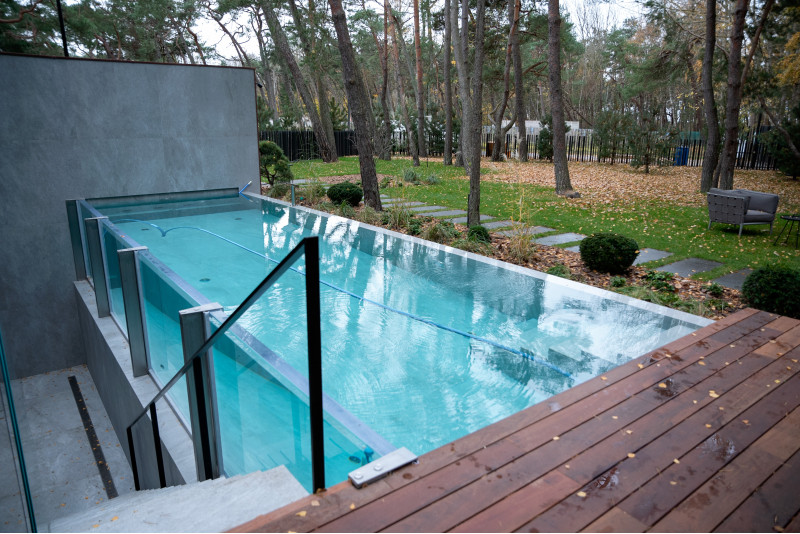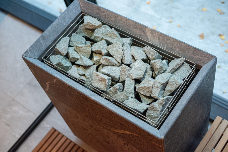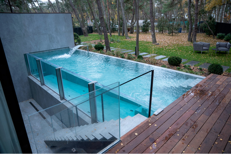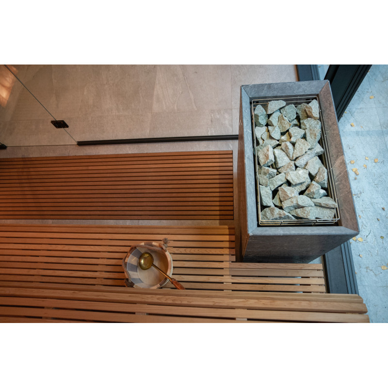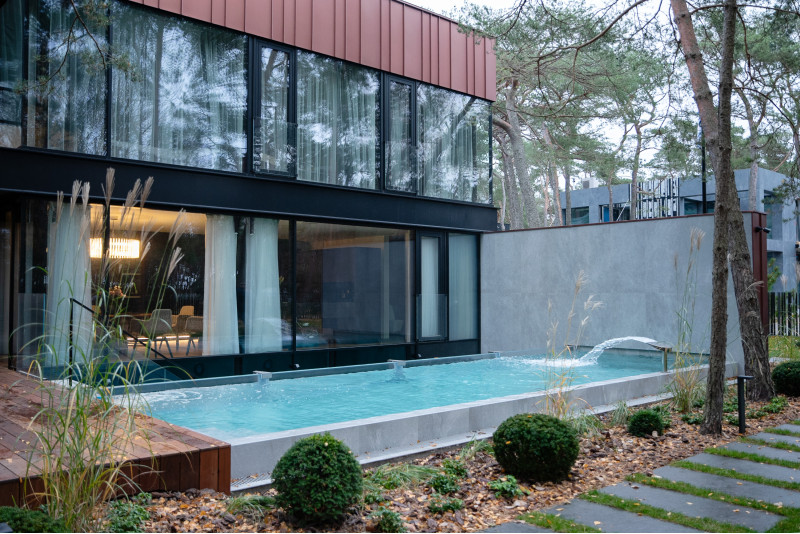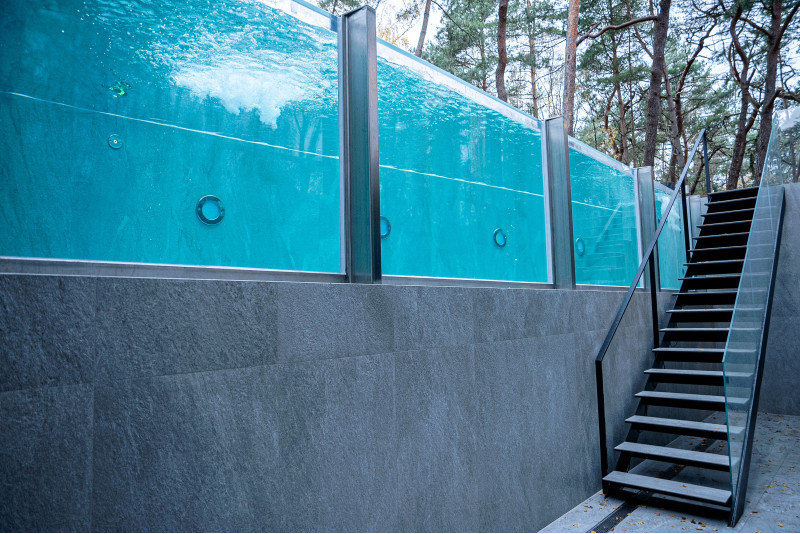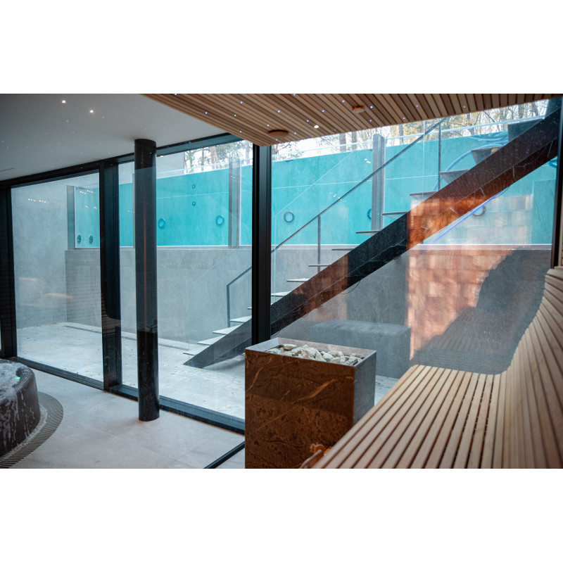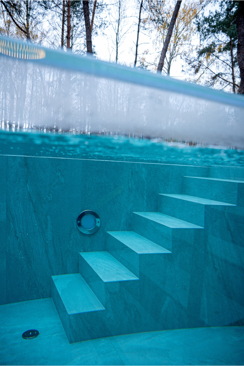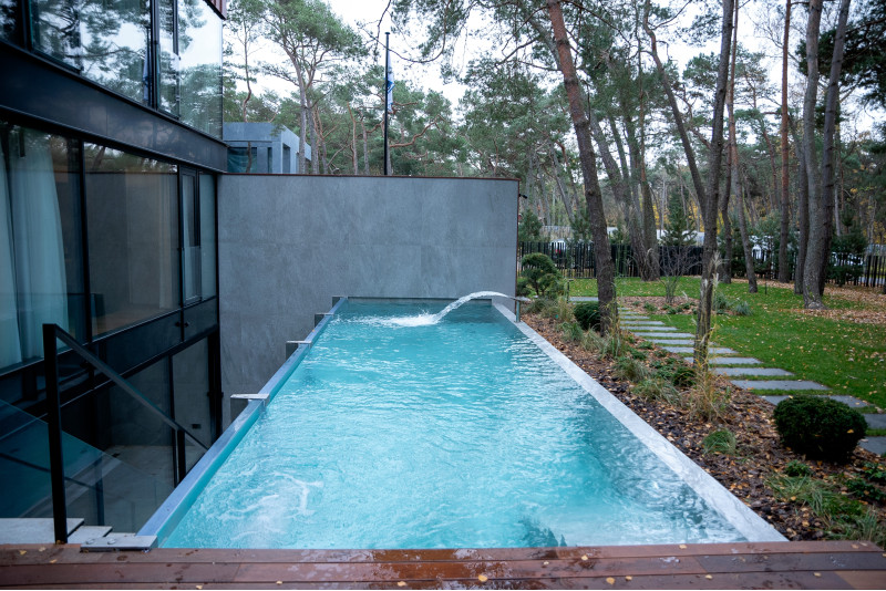 Individuellt projekt av bastu, utomhuspool, hällanordning och bubbelpool