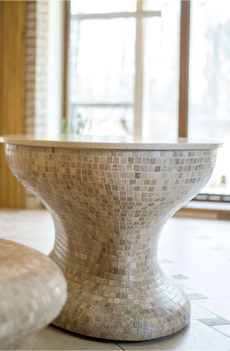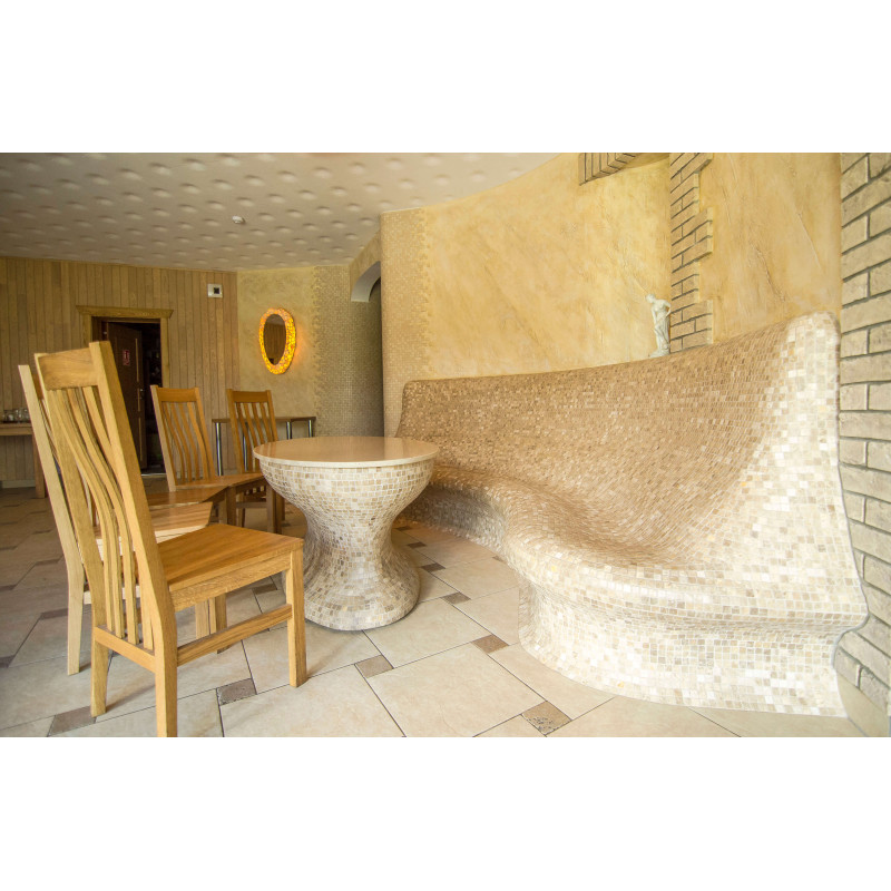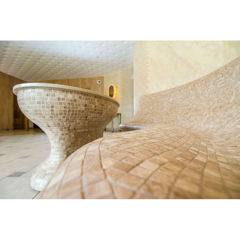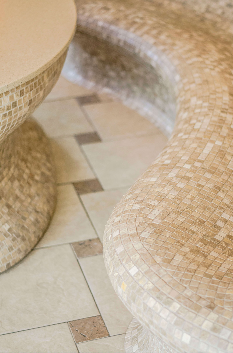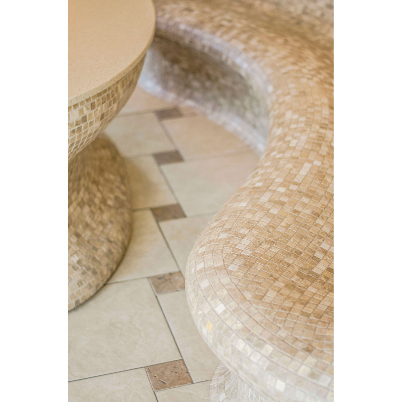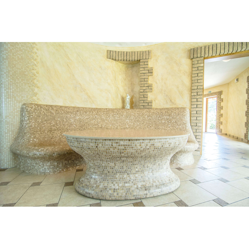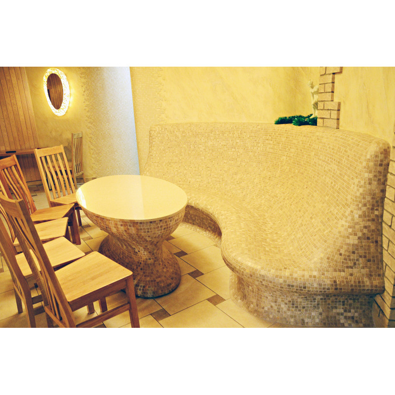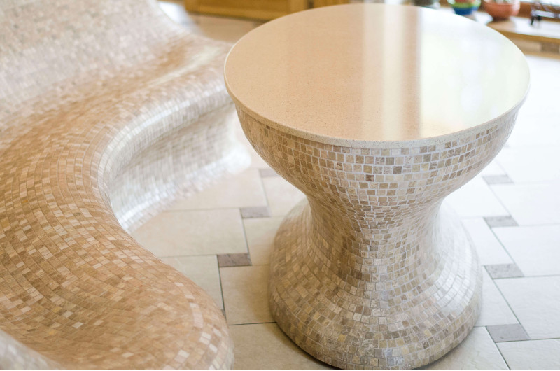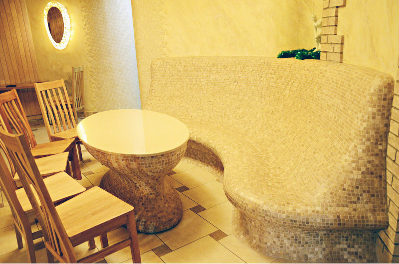 Uppvärmda bänk- och bordsformer är gjorda individuellt av speciell extruderad polystyren. Bänkskiva - marmor. Finish - mosaikplattor. Bänken värms upp från värmesystemet.