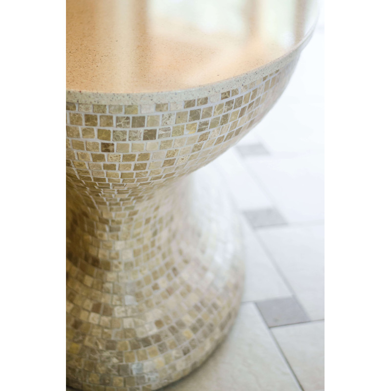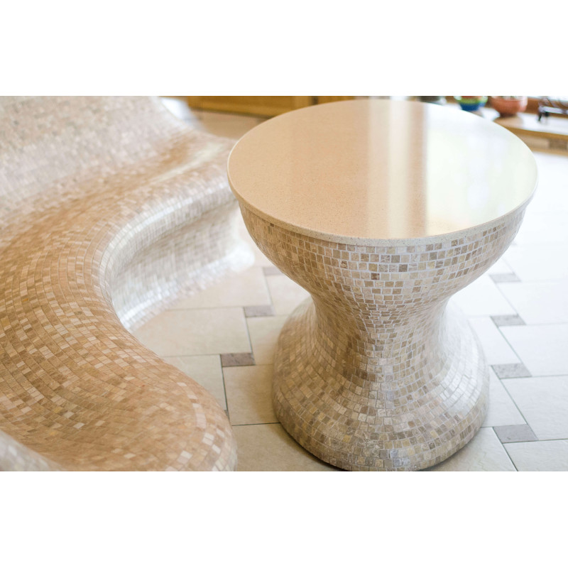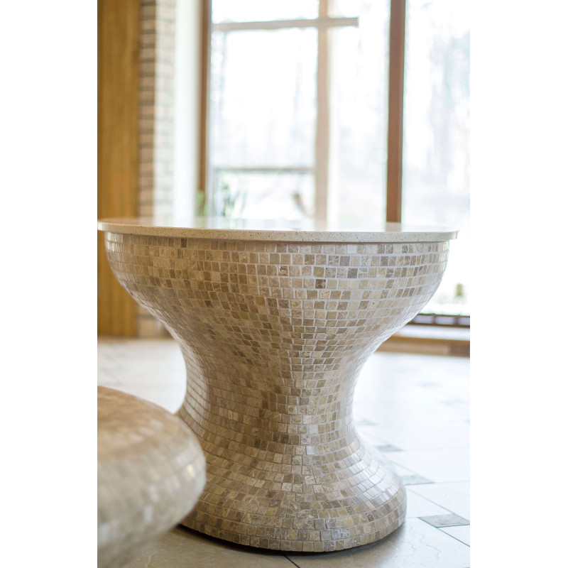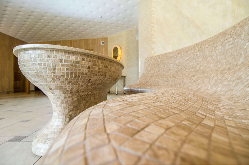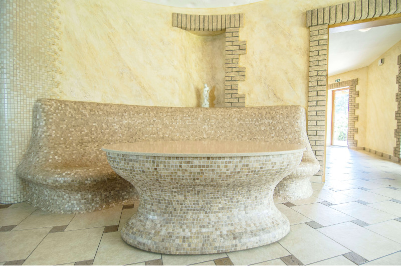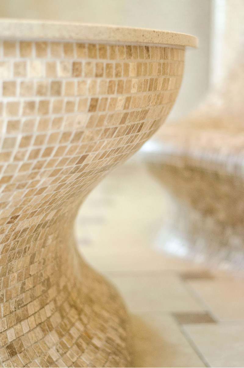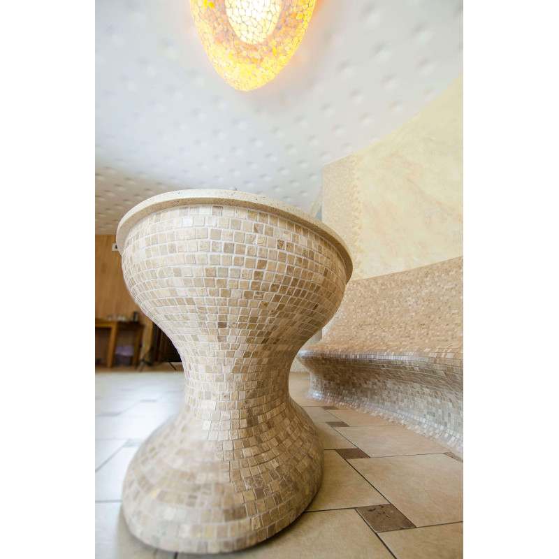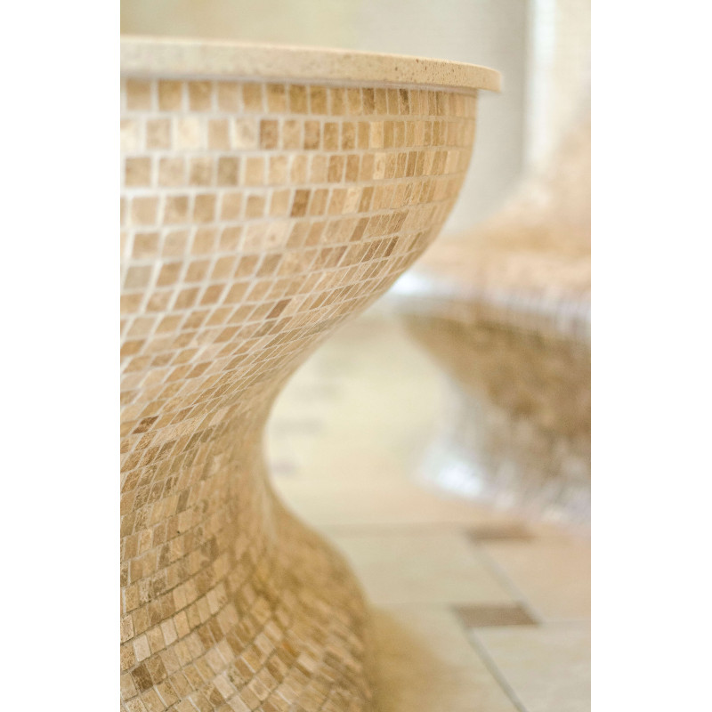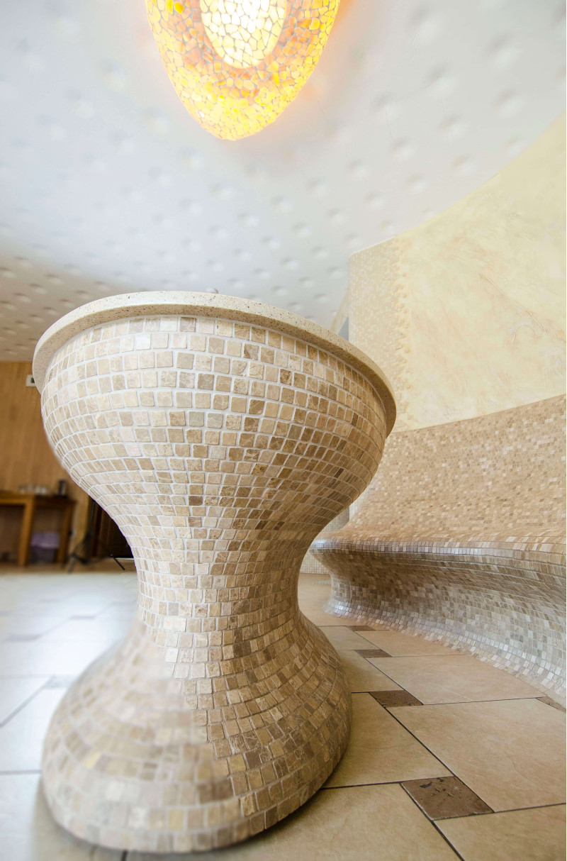 Uppvärmda bänk- och bordsformer är gjorda individuellt av speciell extruderad polystyren. Bänkskiva - marmor. Finish - mosaikplattor. Bänken värms upp från värmesystemet.