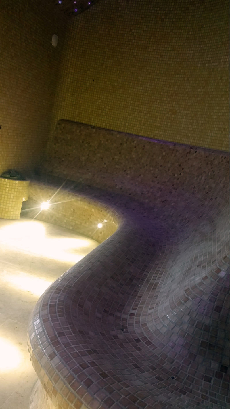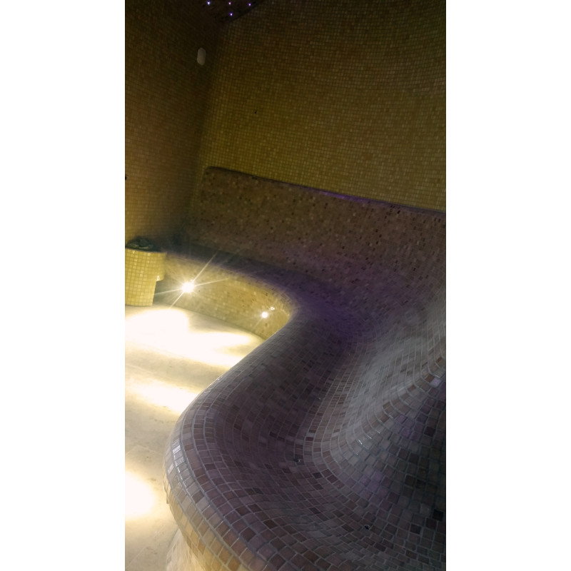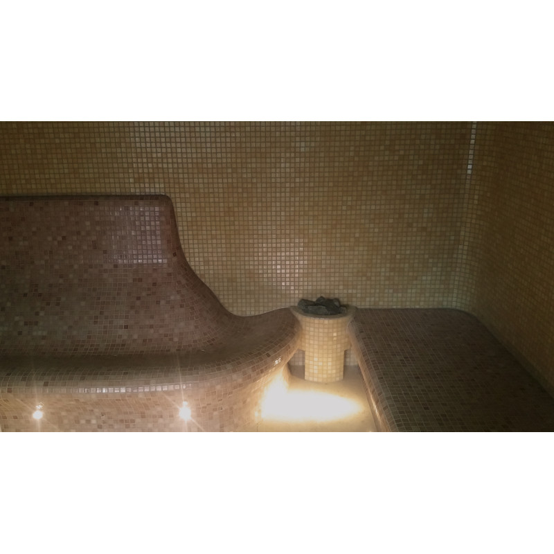 Ångbastubänkar, väggar och tak är gjorda individuellt av speciell extruderad polystyren.