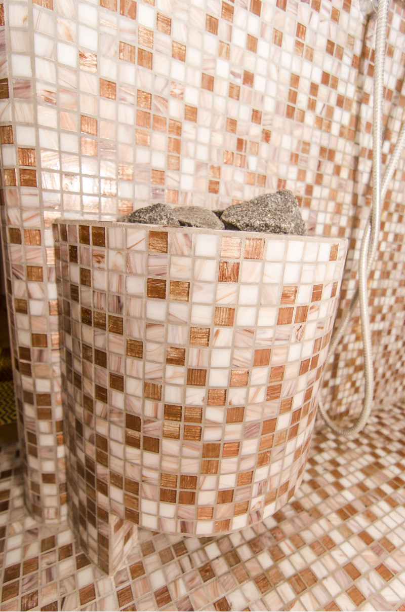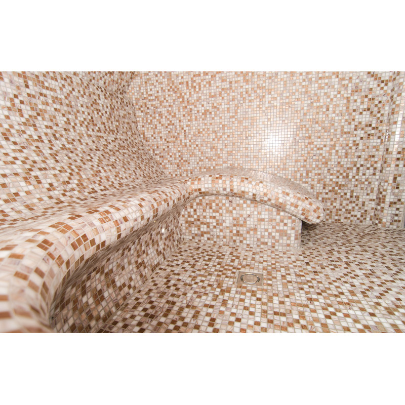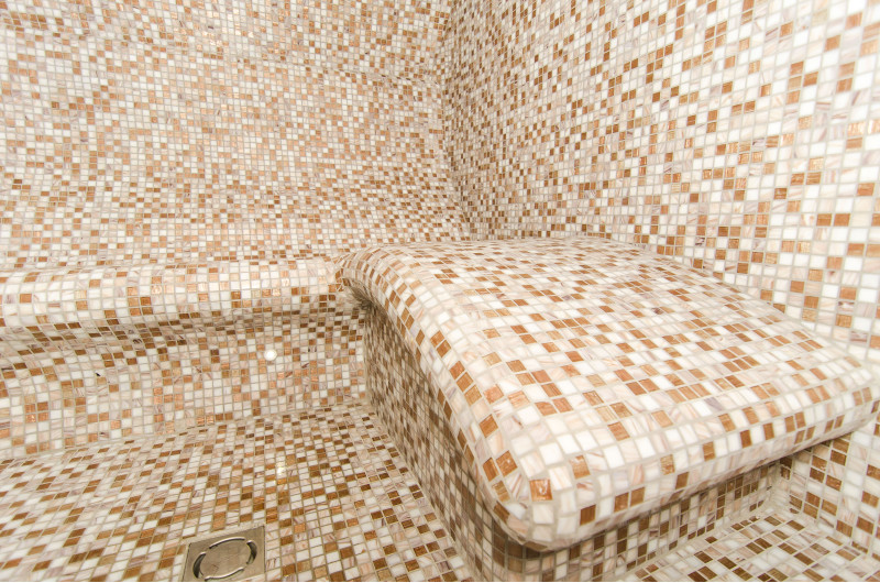 Ångbastubänkar, väggar och tak är gjorda individuellt av speciell extruderad polystyren. Taket är en bågform som är typisk för alla ångbastur.