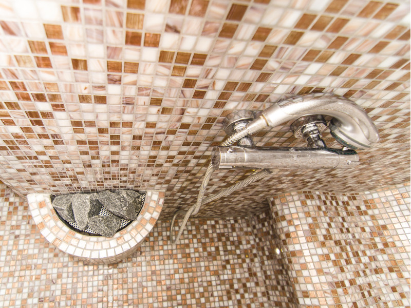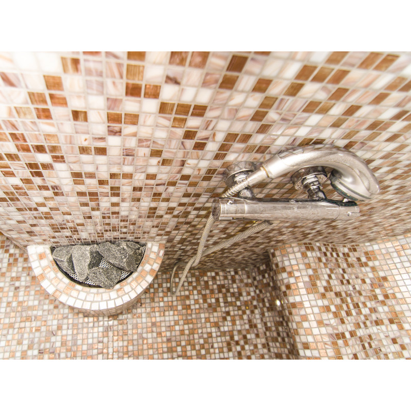 Ångvasen utför funktionen av ett ångskyddsrör, genom vilket ånga kommer in i bastun, dekorerad med olivindiabasstenar.