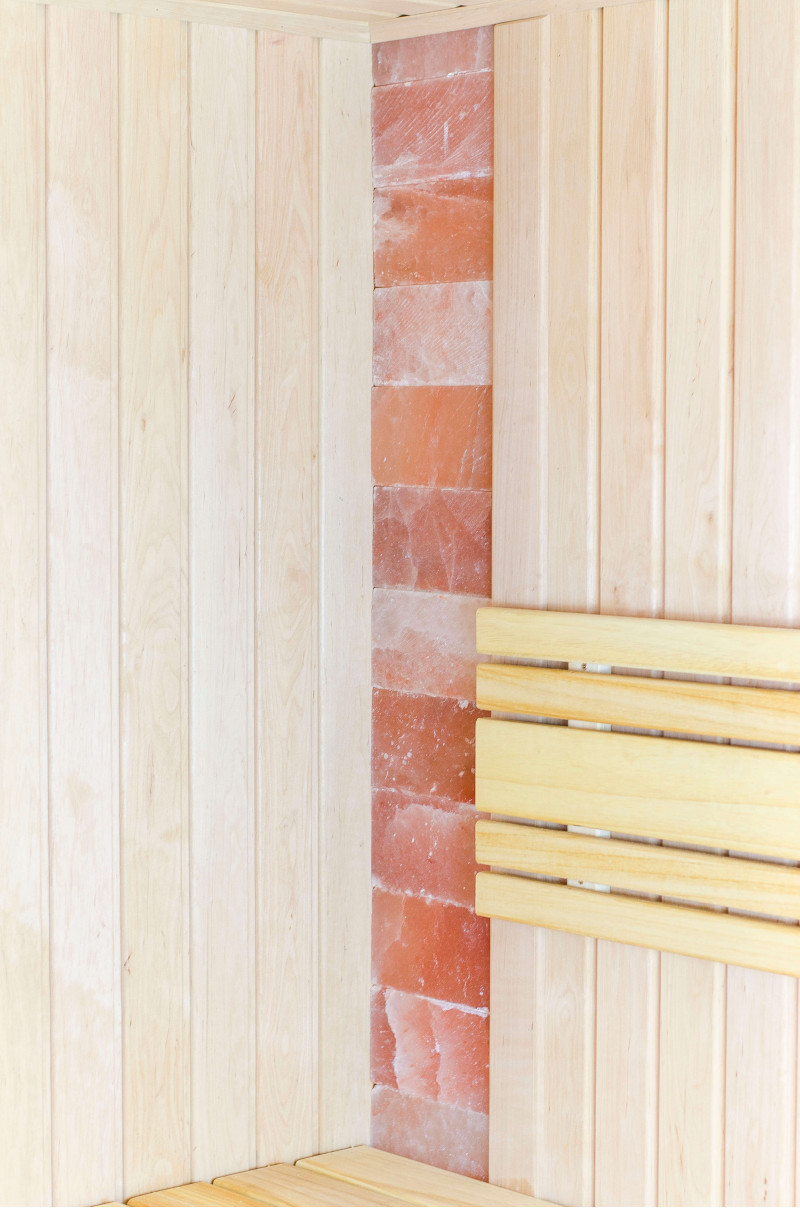 Himalaya-saltstenarna som valts ut för dekoration av bastun med inbyggd belysning skapar en mysig miljö och förbättrar bastueffekten ytterligare. Himalaya saltstenar är en naturlig jonisator som effektivt förbättrar luftkvaliteten genom att avge negativa joner. Negativt joniserad luft förbättrar hälsan, hjälper till att behandla många sjukdomar såsom: bronkialastma, lung- och bronkialsjukdomar, postinfarkt, högt blodtryck, gastrointestinala sår, gastrit, sköldkörtelsjukdomar, dermatit, olika allergier, nervsjukdomar, hjälper till att övervinna stroke. Fördelarna med att göra procedurerna i en sådan bastu kommer att vara tvåfaldiga.