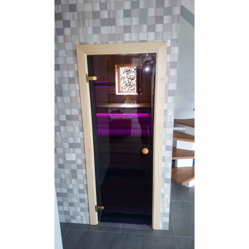 Bastubänkarna och lampskärmen är gjorda av afrikanska abachi-träplankor. Detta högkvalitativa ved värmer minst av allt, så det är skönt att röra vid det i bastun. Väggar och tak är av furupanel. Fönstret i bastun stöder flödet av naturligt ljus, utökar utrymmet och skapar en koppling till naturen. Fönsterglas - härdat, värmebeständigt, bronsglas.