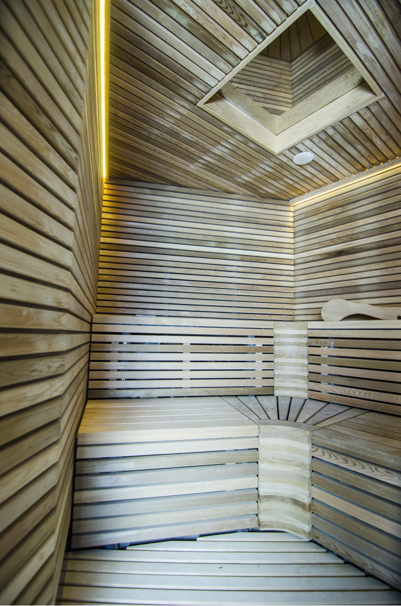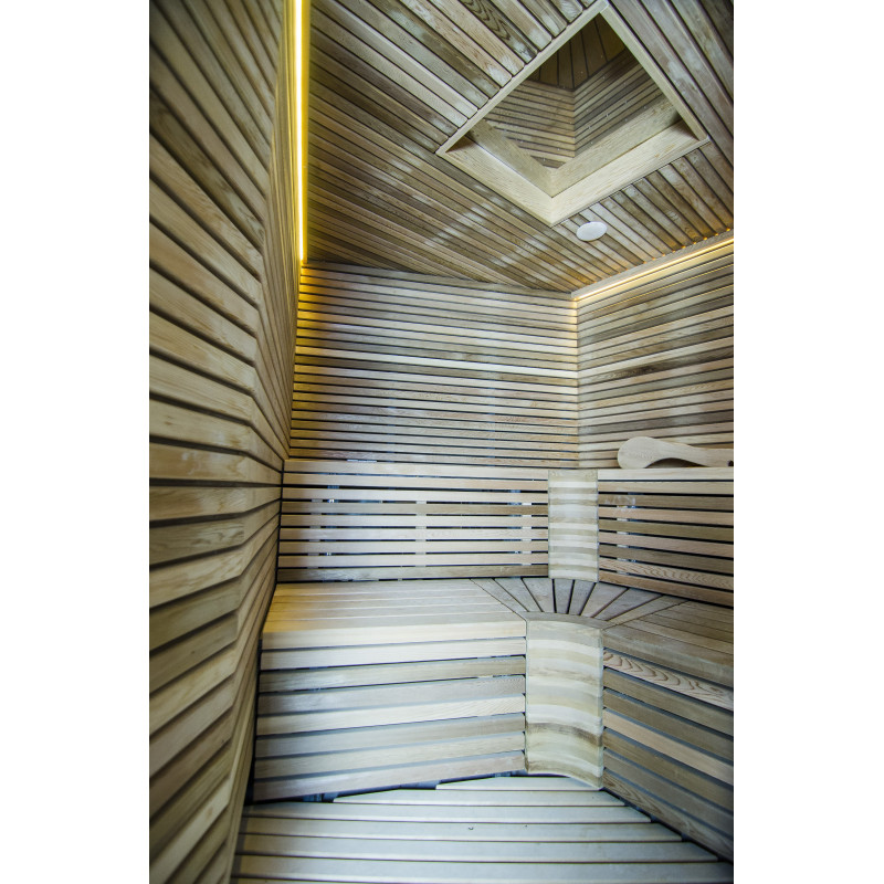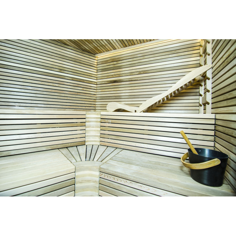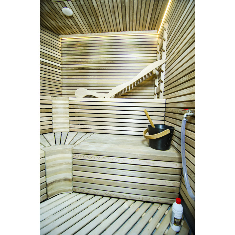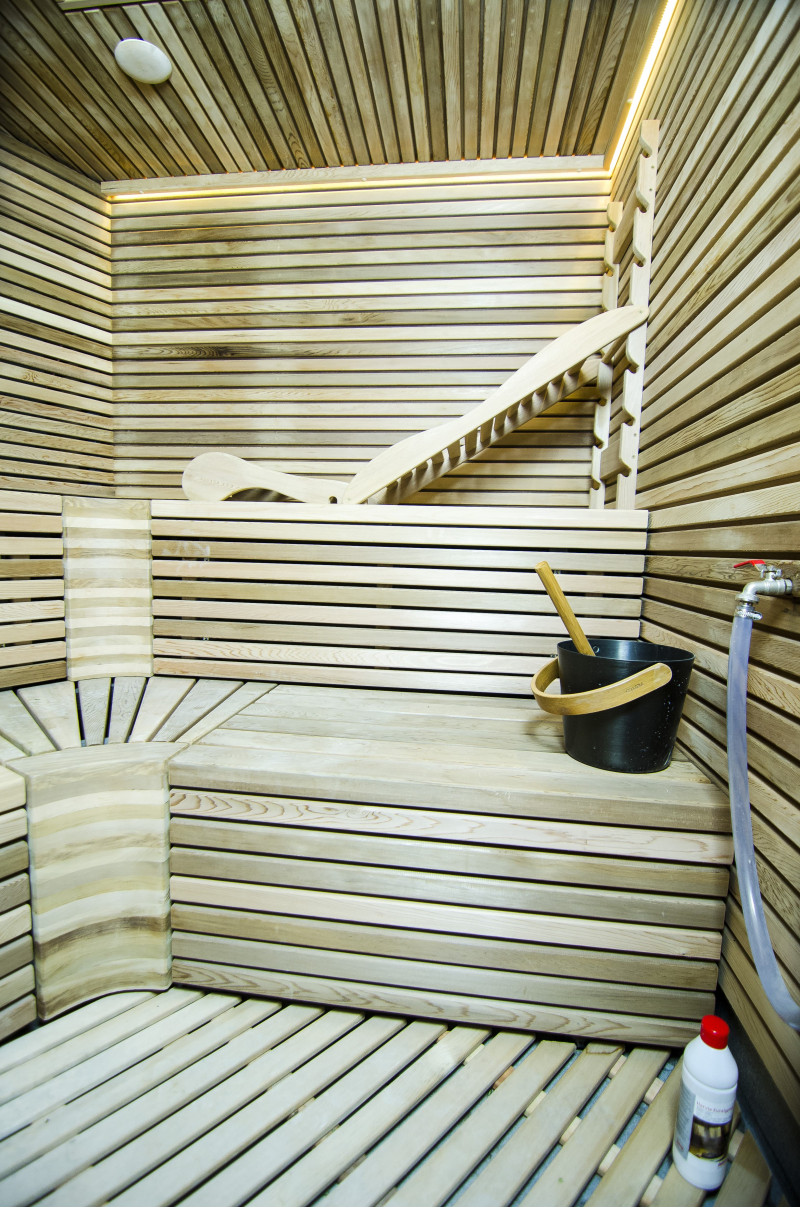 Bastuns väggar och bänkar är gjorda av cederträ av högsta kvalitet.