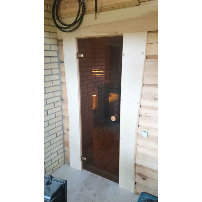 Dörrar - tonat härdat glas med ett runt trähandtag.