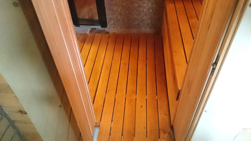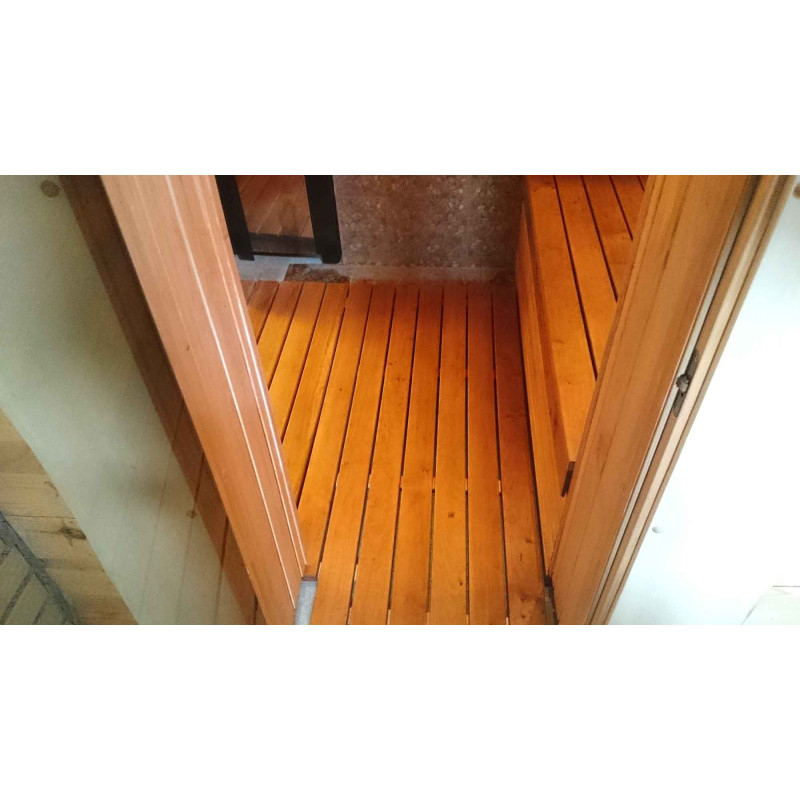 Inredning - högkvalitativ svart al sidospår. Svart al sidospår tolererar perfekt stora temperaturskillnader, spricker inte eller deformeras. Uppvärmd avger en underbar och lätt doft av naturligt trä, vilket ger komfort vid bastubehandlingar. Svart al värms inte upp i en varm bastu, så det är omöjligt att brinna i kontakt med ytan.