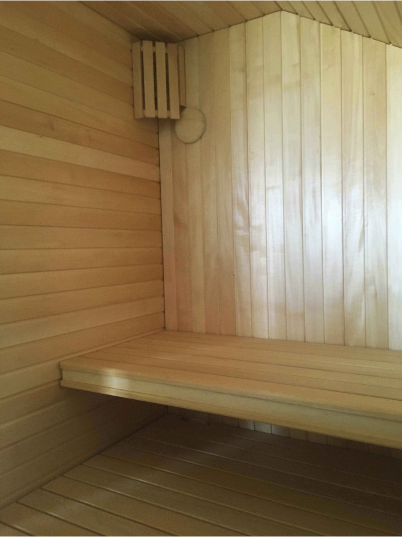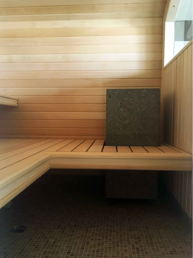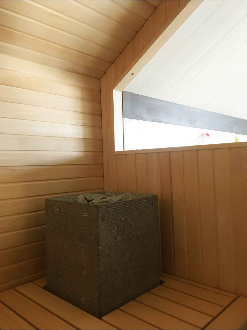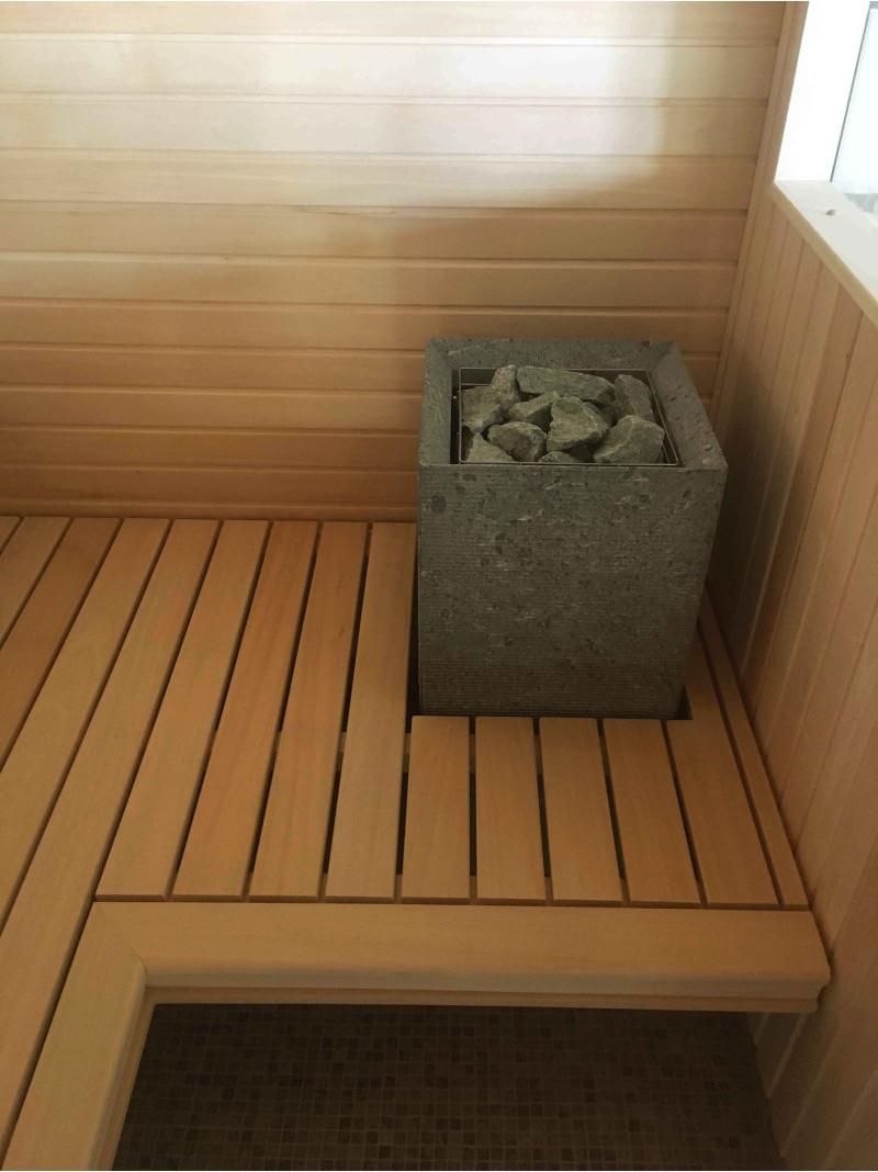 Bastuns väggar och tak är gjorda av lindträ. Linden sidospår ger bastun mer ljus och avger en behaglig trädoft. Högkvalitativ abachiträpanel valdes för bänkarna, ryggstöden och staketet runt värmaren. Detta mjuka och ouppvärmda trä är ett utmärkt val för bänkar, stöder där träet vidrör huden utan att bränna det. Detta garanterar komfort och en härlig vila i bastun. Bänkar, stöd och väggar är lackade, helt förberedda för långvarig användning.