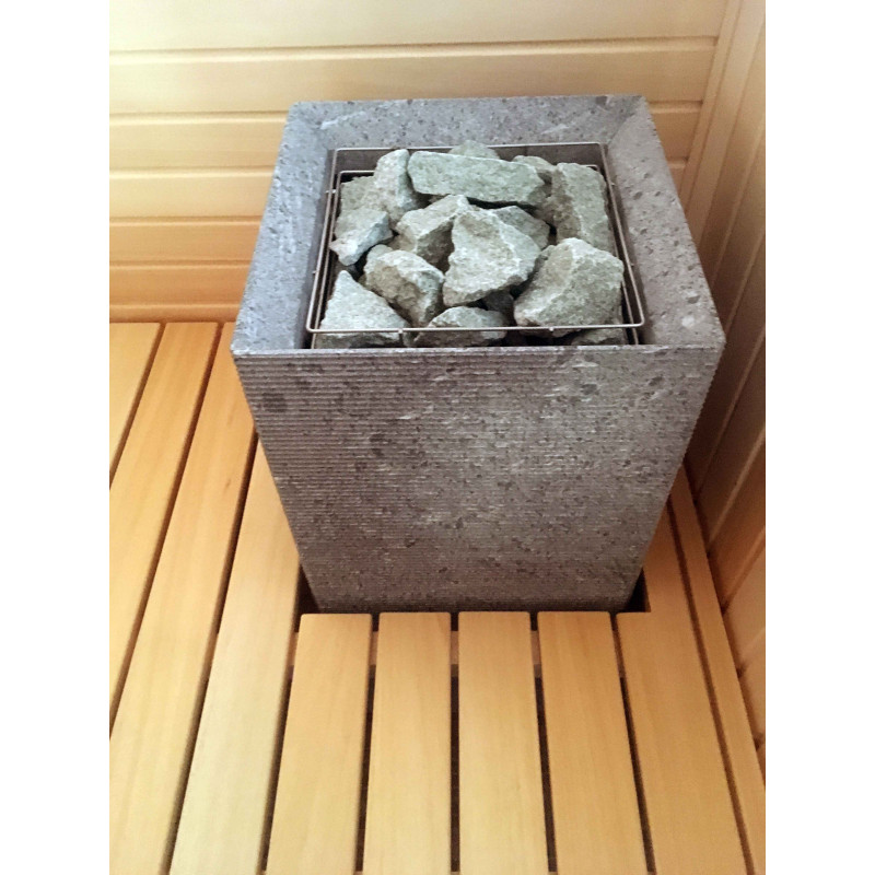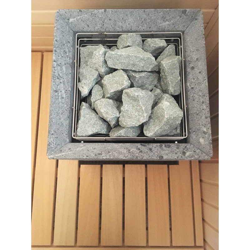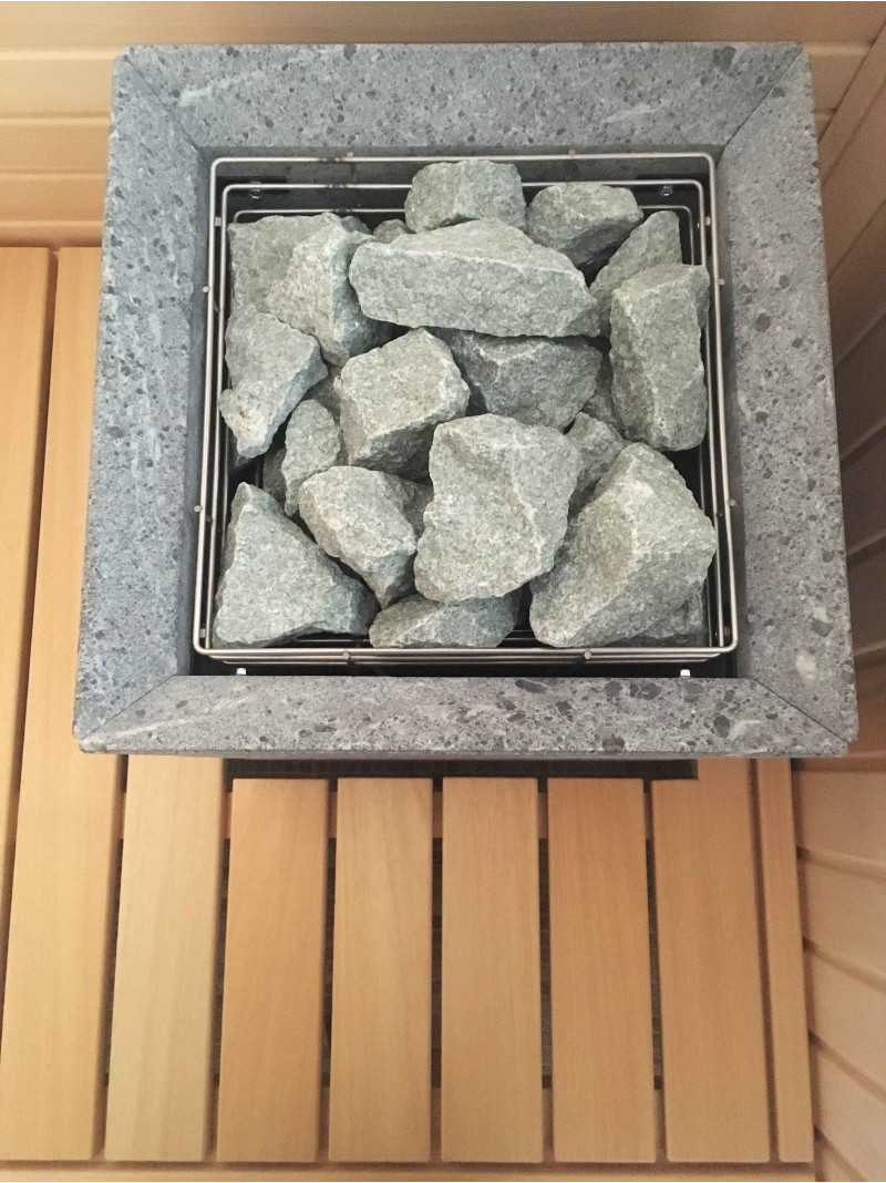 Elvärmare Tulikivi Tuisku med täljstensfinish. Styrs av fjärrkontroll. Fylld med en stor mängd av en blandning av olivindiabas och jadeitstenar. På grund av de korta säkerhetsavstånden till brandfarliga ytor och värmarens mycket icke-värmande yta är detta ett bra val för barnfamiljer och för att integrera värmaren i bänkar. Energin som frigörs av jadeit har helande krafter för många sjukdomar. De läkande egenskaperna hos upphettad jadeit förbättras. Att hälla stenen med vatten sprider en behaglig doft av en ren miljö i bastun, vilket gör det lätt att andas.