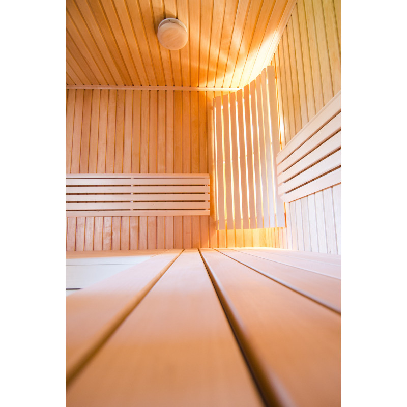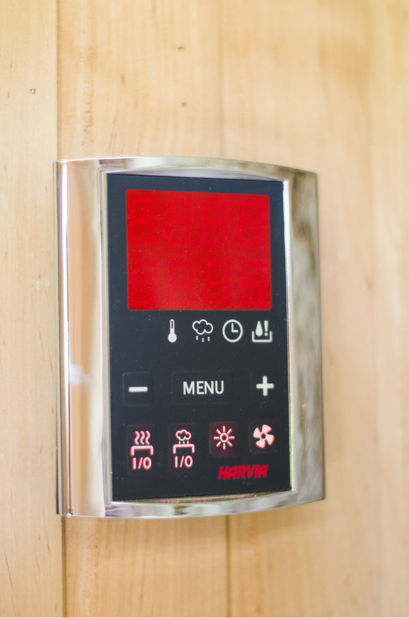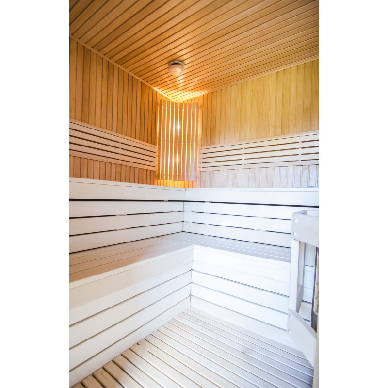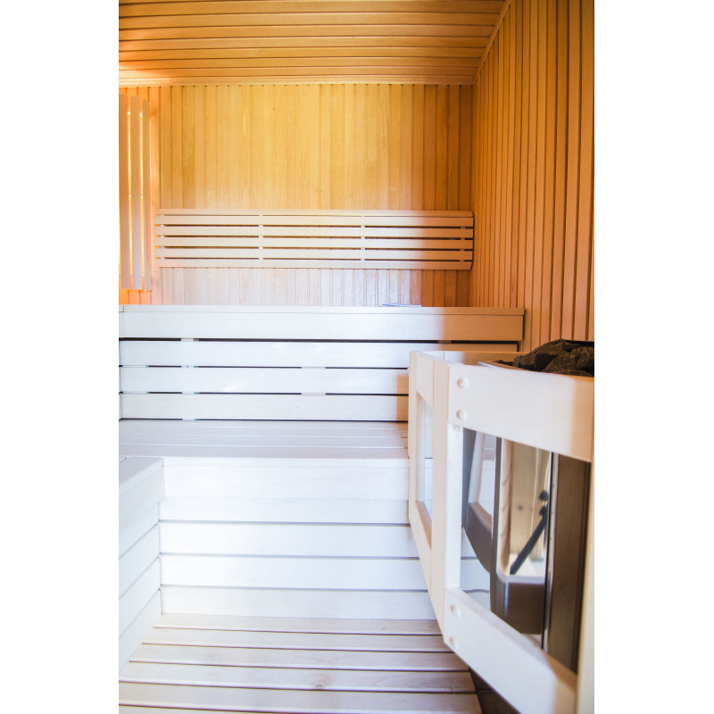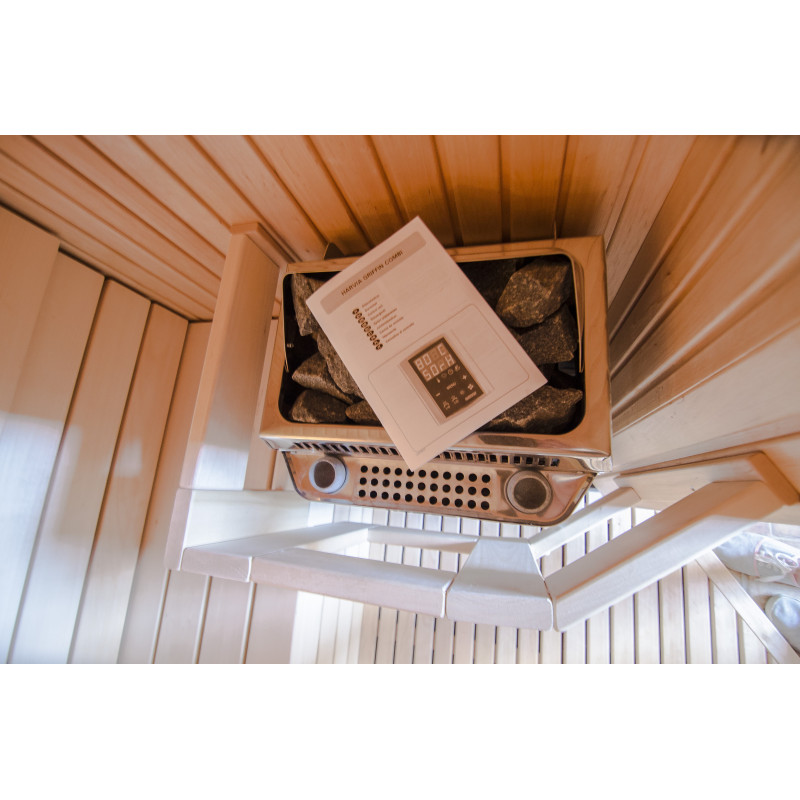 Belysning - två Harvia-lampor installerade under ryggstödet.