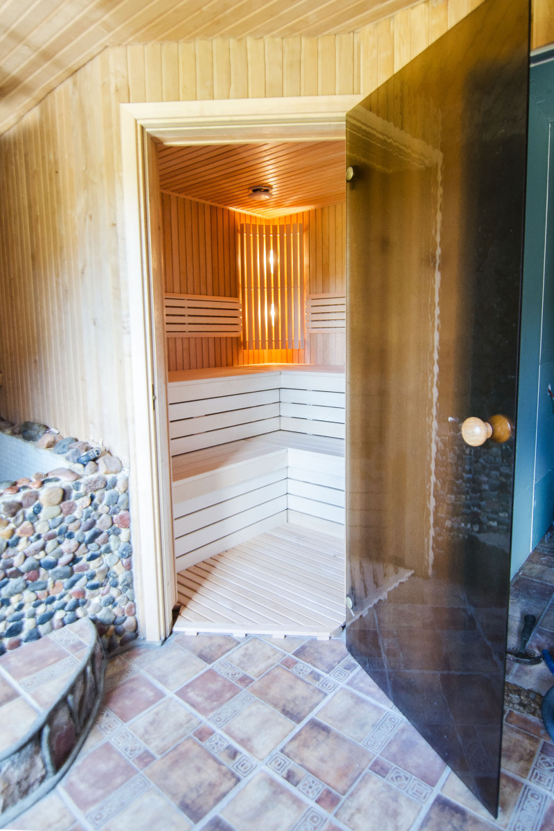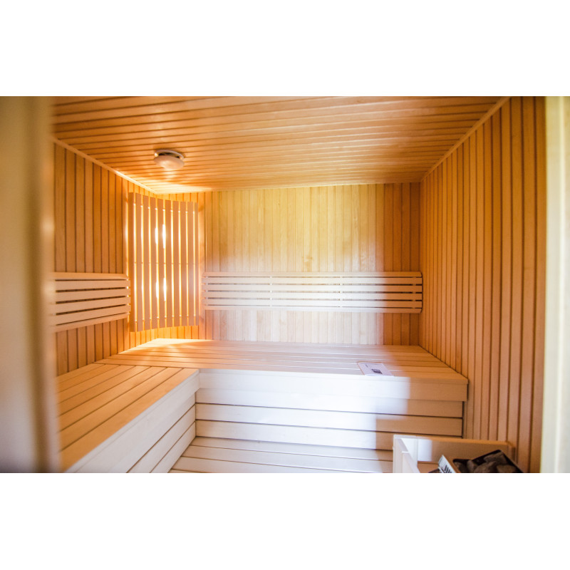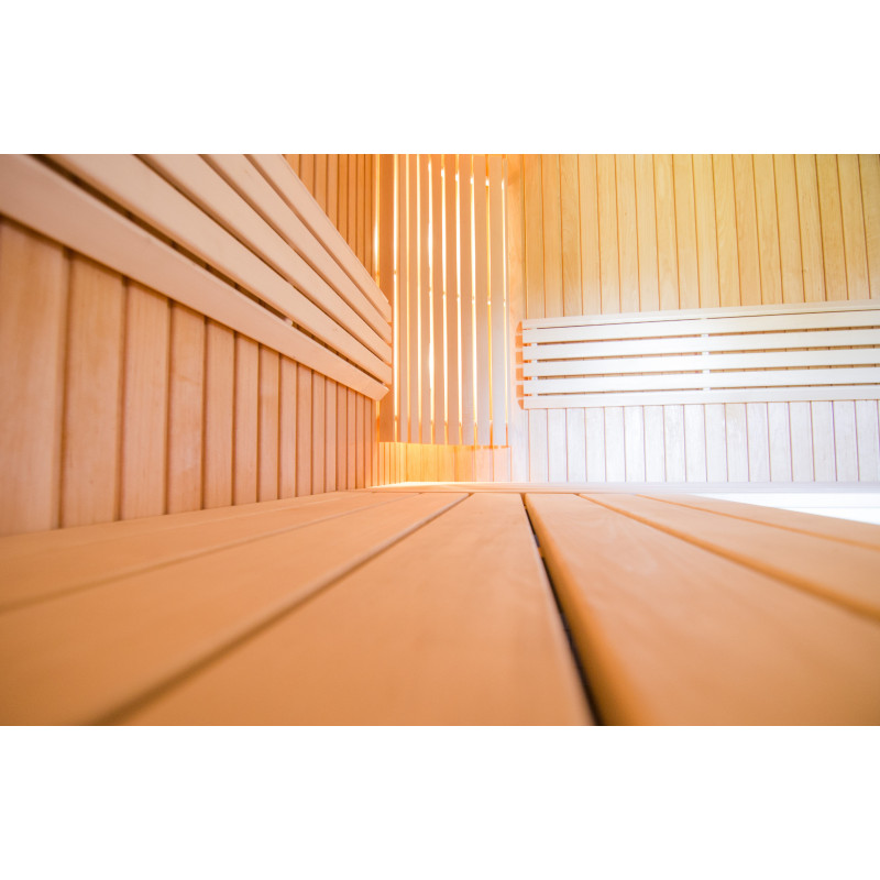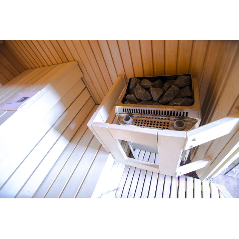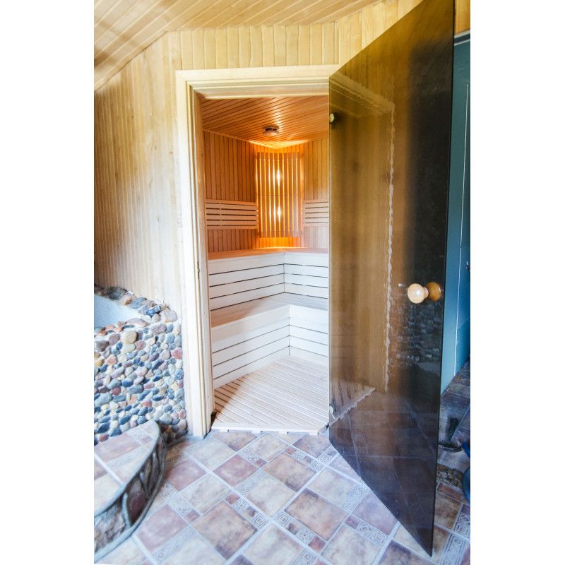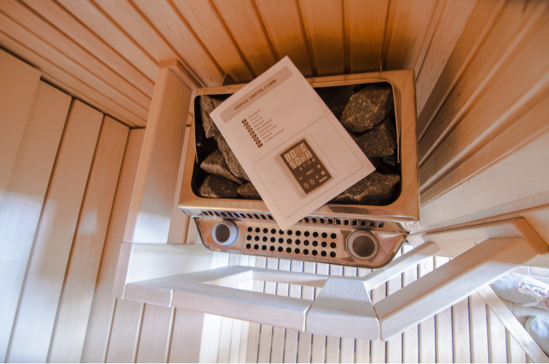 Belysning - två Harvia-lampor installerade under ryggstödet.
