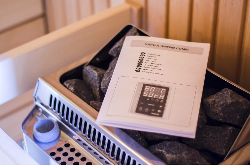 Värmaren har en separat styrenhet Harvia Griffin Combi CG170C för styrning av Combi-värmaren och även värmaren med förångare. Kontrollpanelen installeras utanför basturummet.