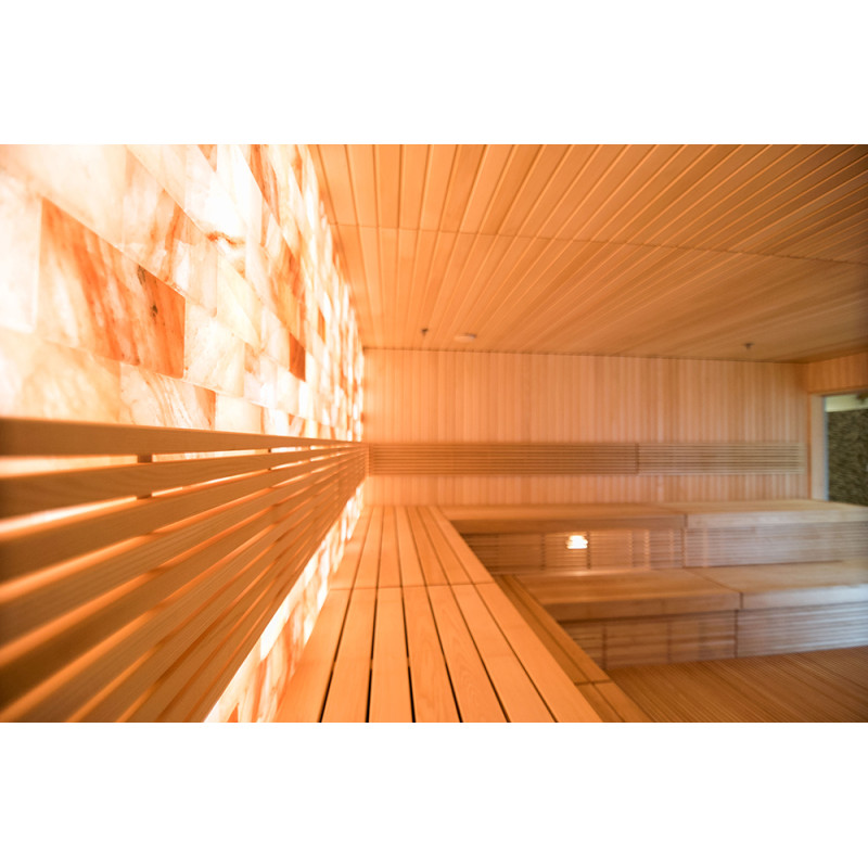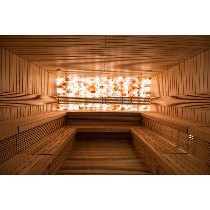 Himalaya saltstenar utvalda för dekoration av bastuväggarna med inbyggd belysning skapar en mysig atmosfär och ytterligare förbättrar bastueffekten. Himalaya salter är en naturlig jonisator som effektivt förbättrar luftkvaliteten genom att avge negativa joner. Negativt joniserad luft förbättrar hälsan, hjälper till att behandla många sjukdomar såsom: bronkialastma, lung- och bronkialsjukdomar, postinfarkt, högt blodtryck, gastrointestinala sår, gastrit, sköldkörtelsjukdomar, dermatit, olika allergier, nervsjukdomar, hjälper till att övervinna stroke. Det finns två fördelar med att använda en bastu i en bastu med Himalaya -salter.