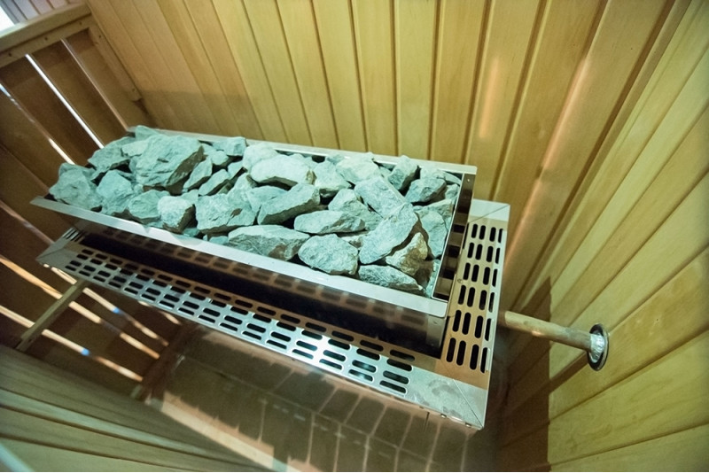 Bastu sidospår och inre trädetaljer är gjorda av A-typ lindeträ. Ett staket för värmaren har bildats. Träet är impregnerat och lackerat, oljat - speciellt förberett för användning i varma temperaturer och luftfuktighet.