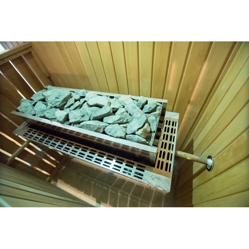 - Bastun värms upp av en elektrisk värmare - Harvia Profi. Denna värmare är utformad för de största offentliga baden. Extremt stark konstruktion av rostfritt stål.