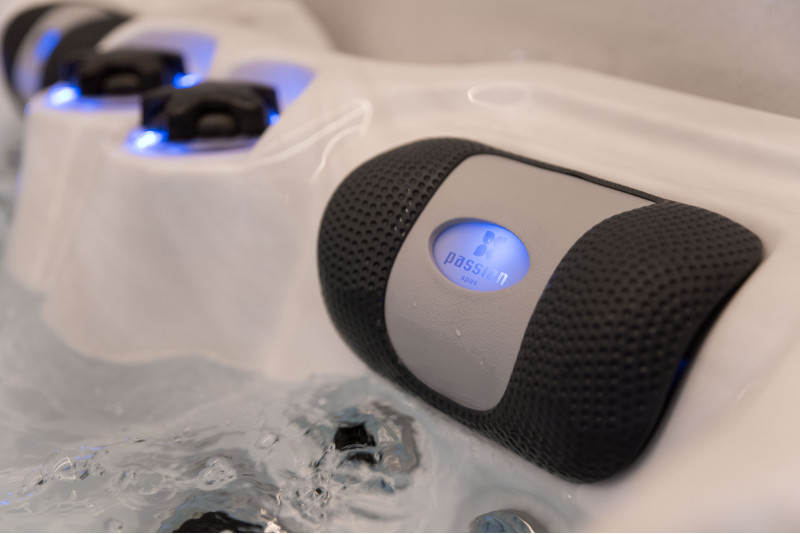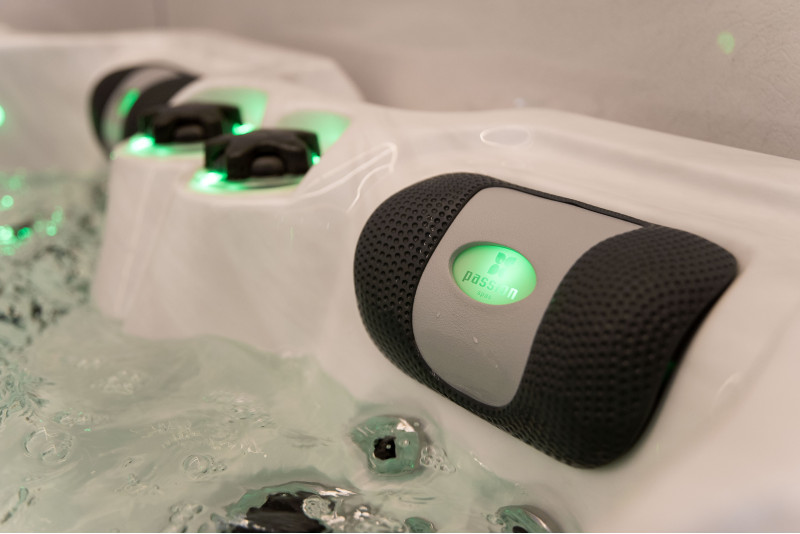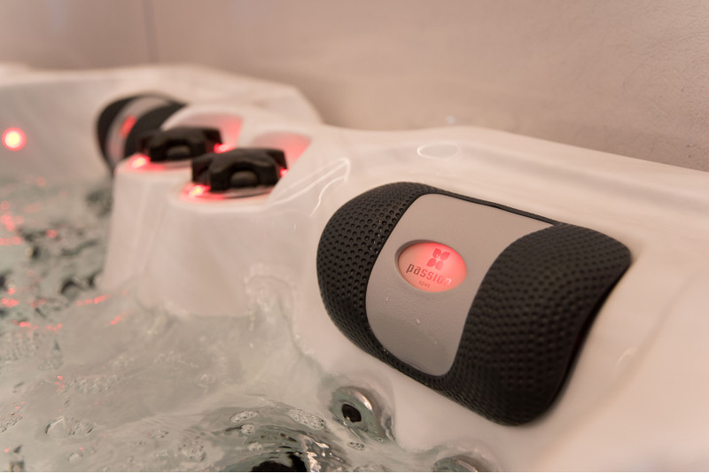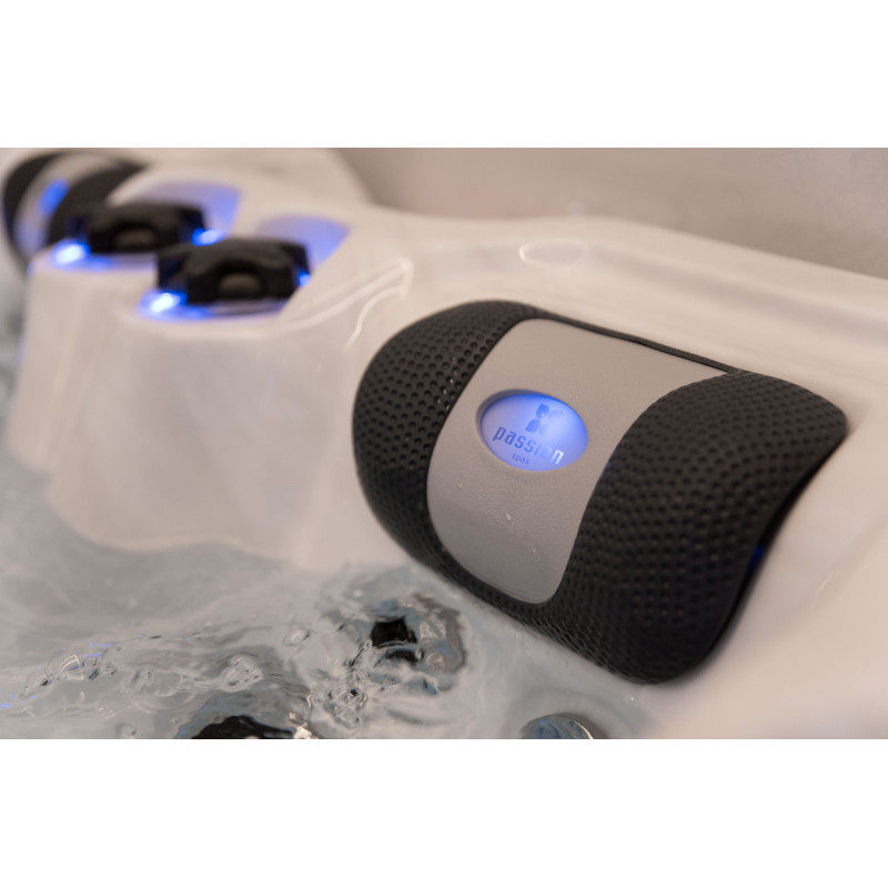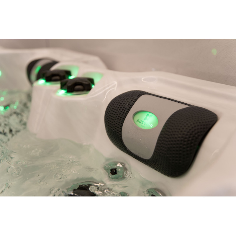 Spapoolen är utrustad med LED-färgad belysning, som ser särskilt vacker ut i mörkret. Alla kontroller och kuddar ger accentbelysning som i kombination med Passion Spas integrerade ljudsystem skapar en magisk upplevelse.
