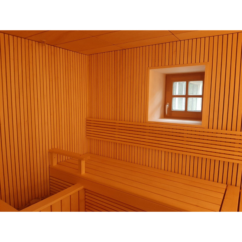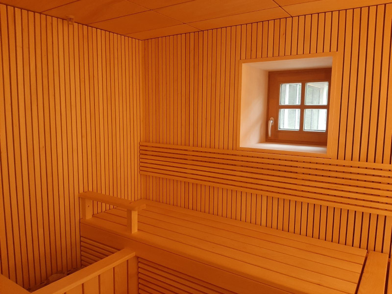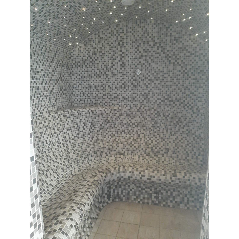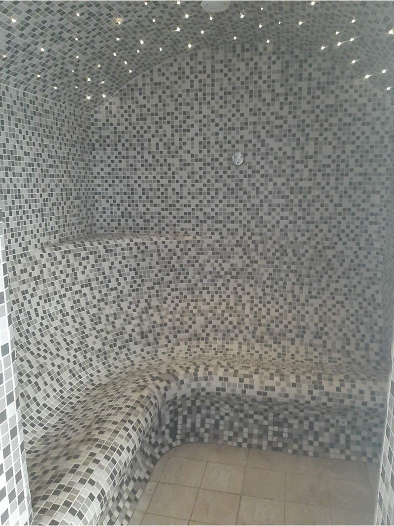 - Ångbastu - använda material som tål extremt höga temperaturer och mycket hög luftfuktighet. Taket är av bågtyp så att ångkondensatet inte droppar på de som tycker om bastun. Plattor har valts för dekorationen och fiberoptisk belysning för taket, vilket skapar en stjärnhimmelseffekt. Bänkarna är i en särskilt bekväm form.