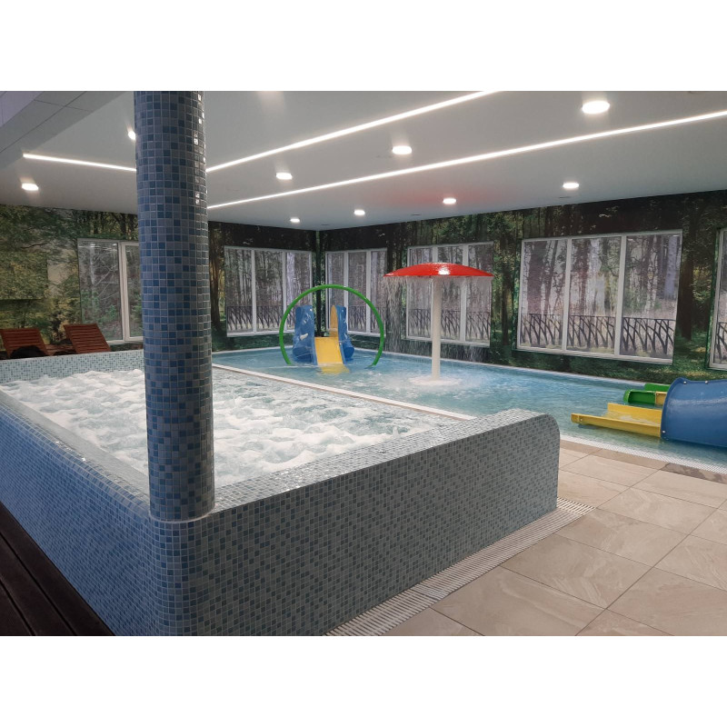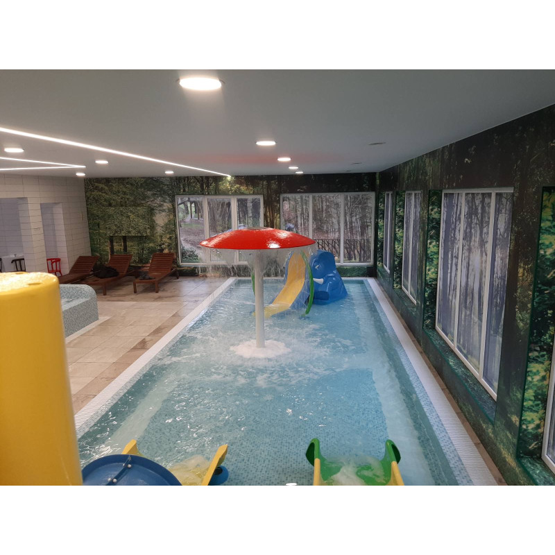 - Pool (6m lång) med kaskader, undervattensgejsrar.