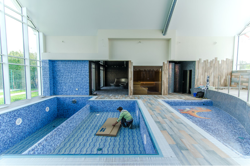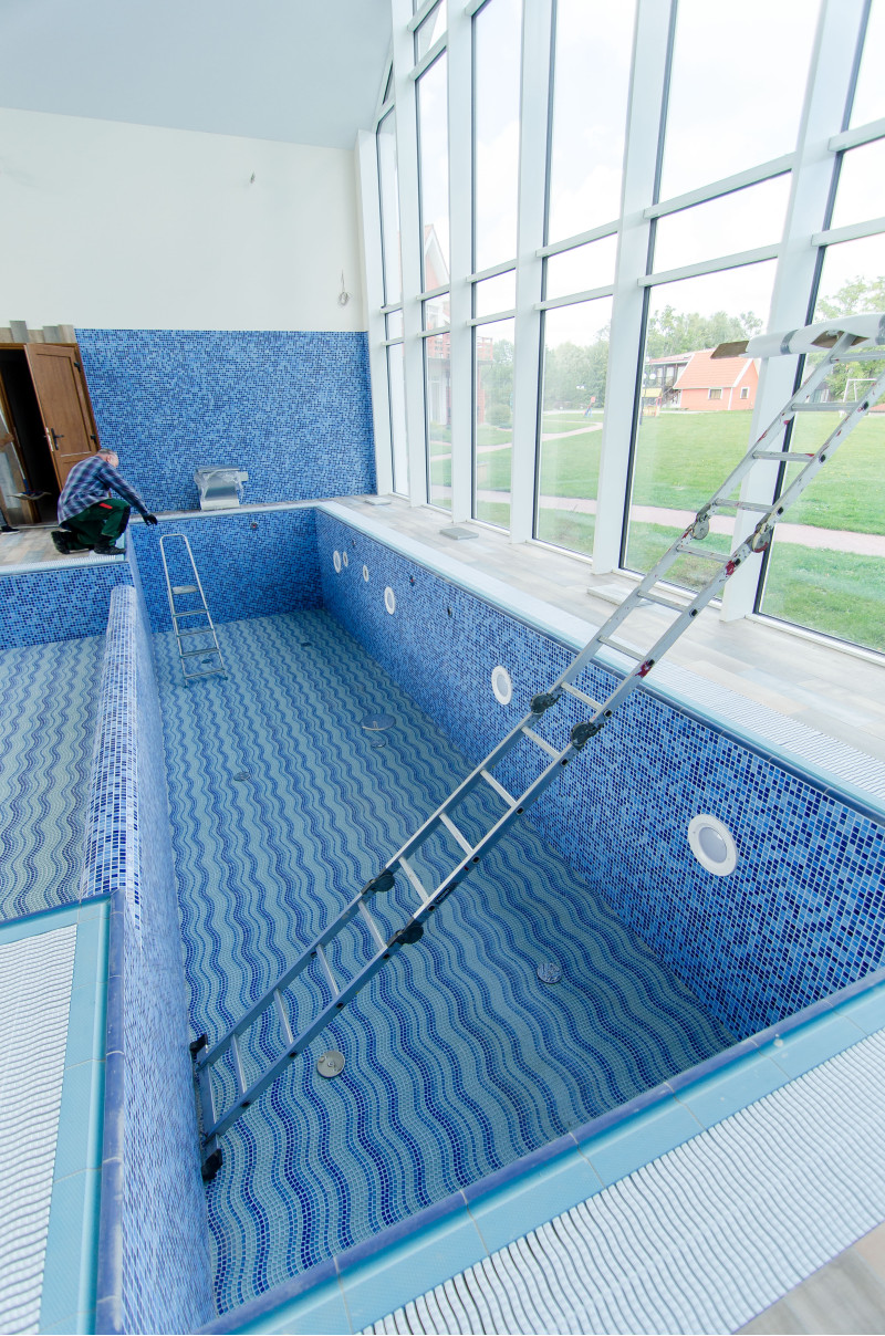Hydromassagepool - 8 platser. Utrustad med betong. Interiören är klädd med mosaikplattor. Undervattens LED-armatur, massagestrålar, filtreringsutrustning, automatisk kemikaliedoseringsutrustning.
