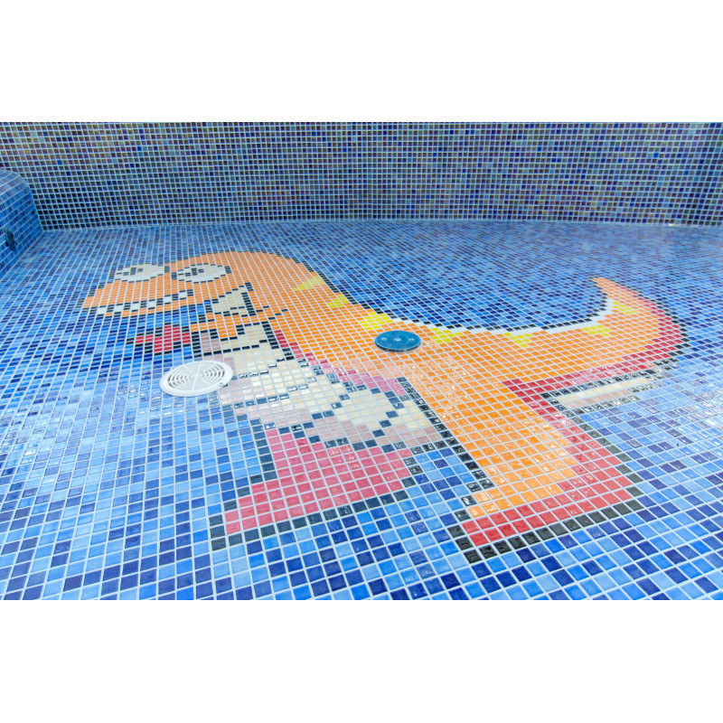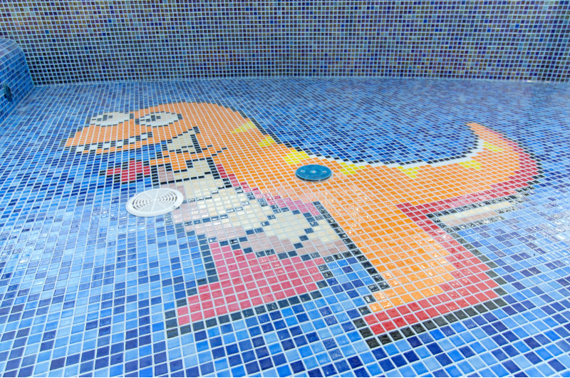 Den 15 cm djupa poolen är designad för de minsta vattenentusiaster. Dess botten är dekorerad med en färgglad mosaikteckning.