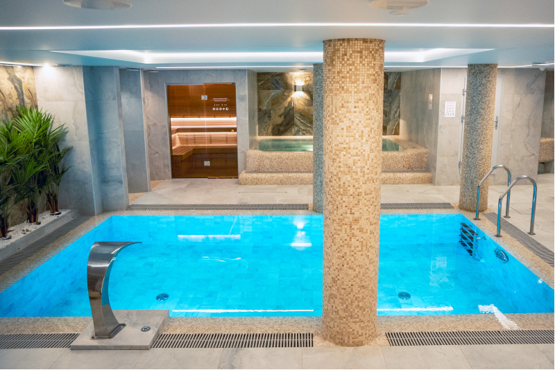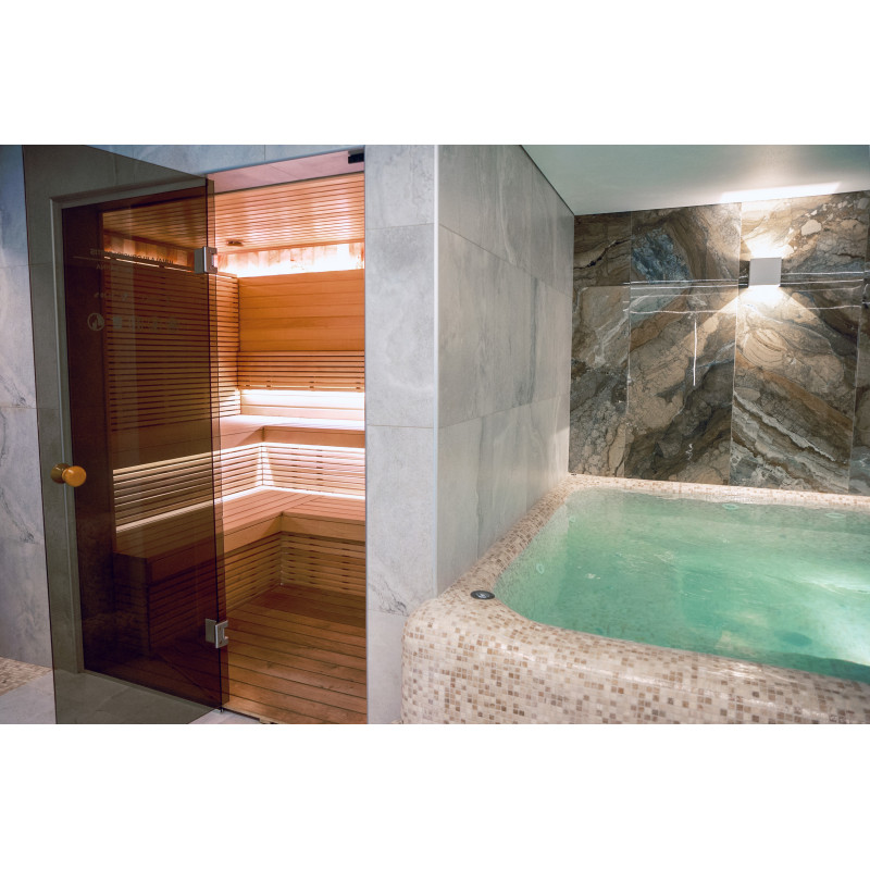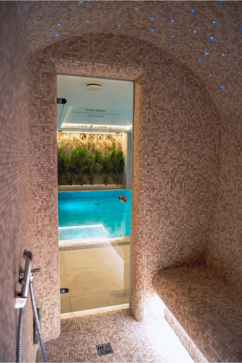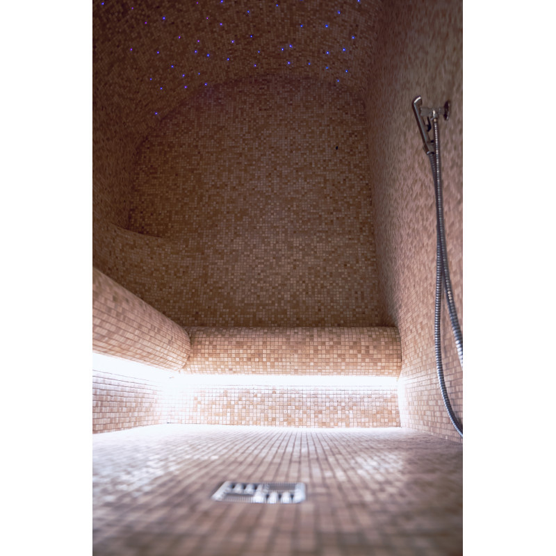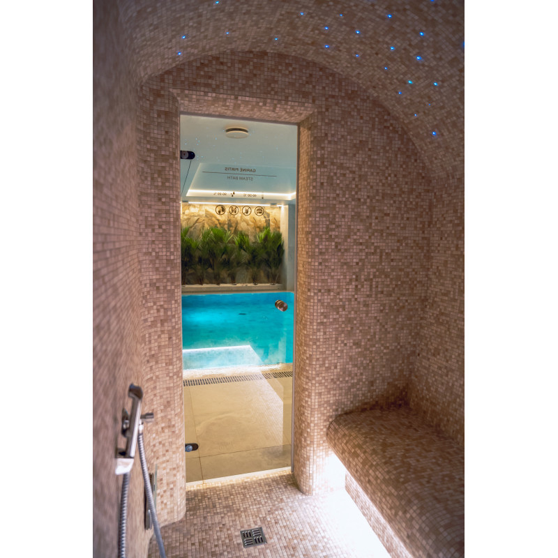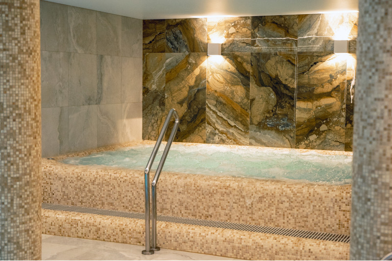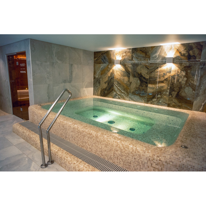 Anläggningen inkluderar ett ångbad, en bastu, en isgenerator och en pool med massagestråle och bubbelpool.