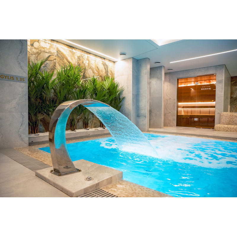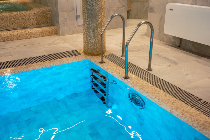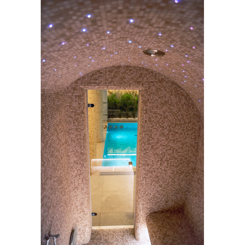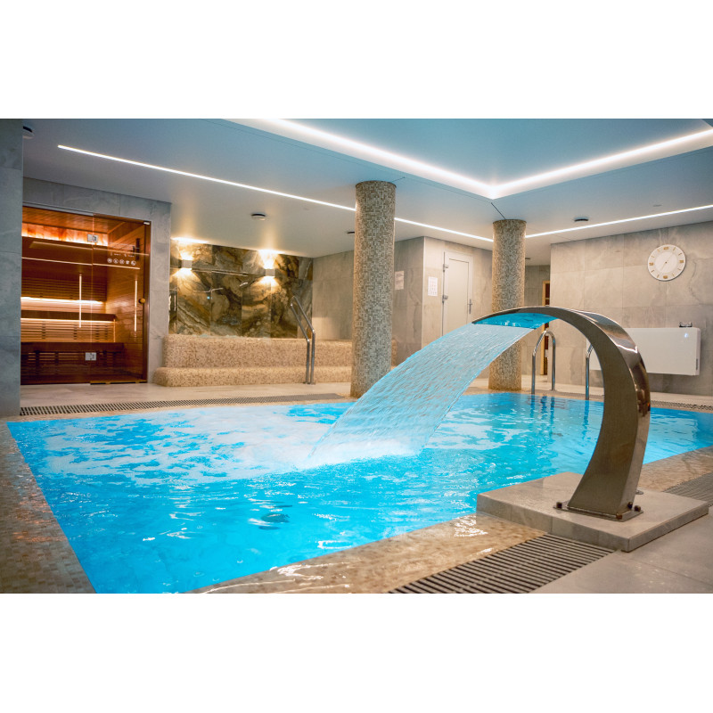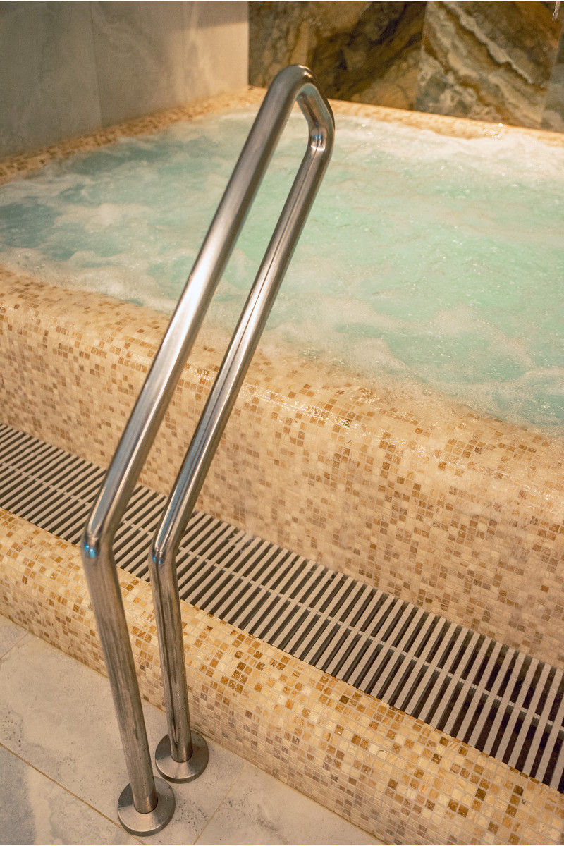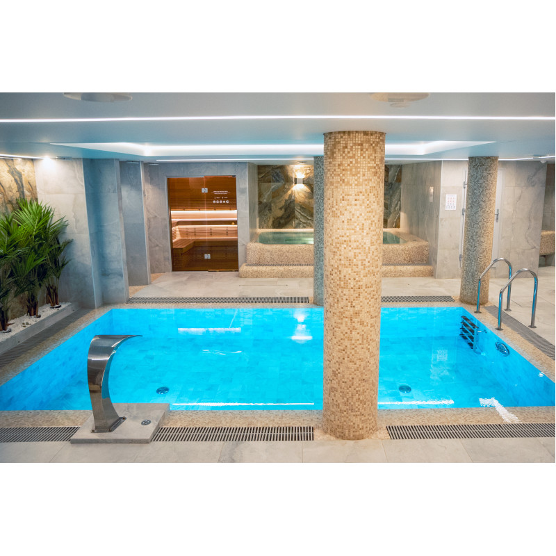 Anläggningen inkluderar ett ångbad, en bastu, en isgenerator och en pool med massagestråle och bubbelpool.
