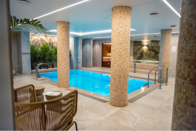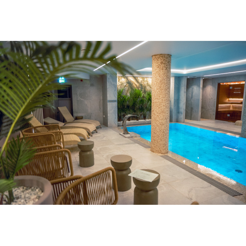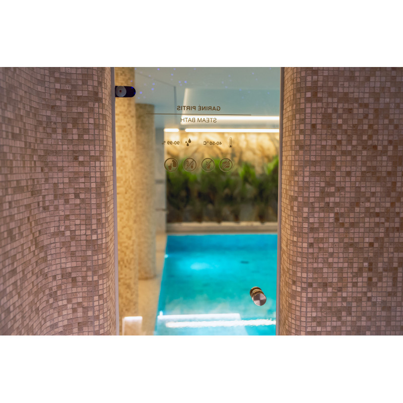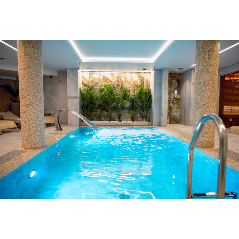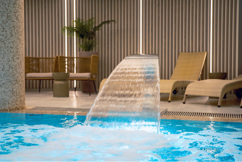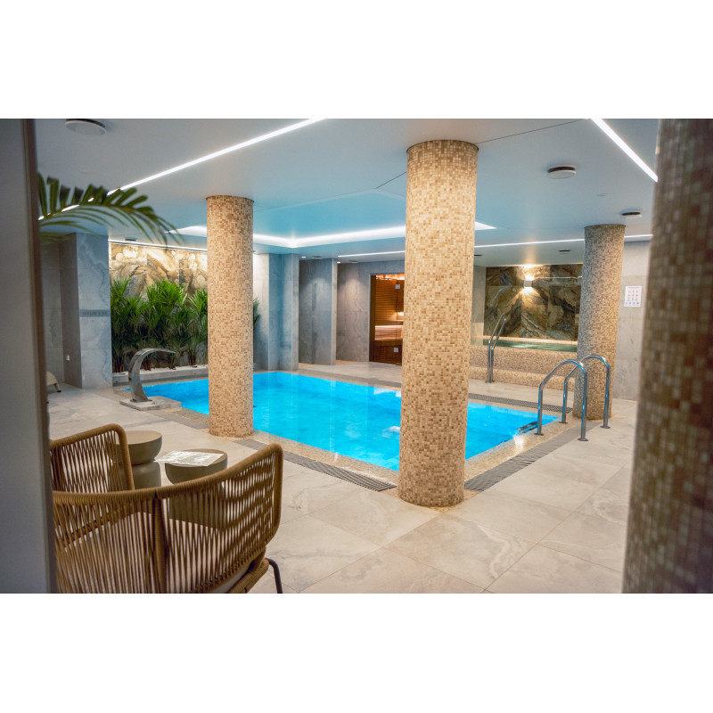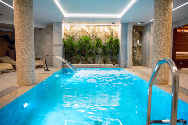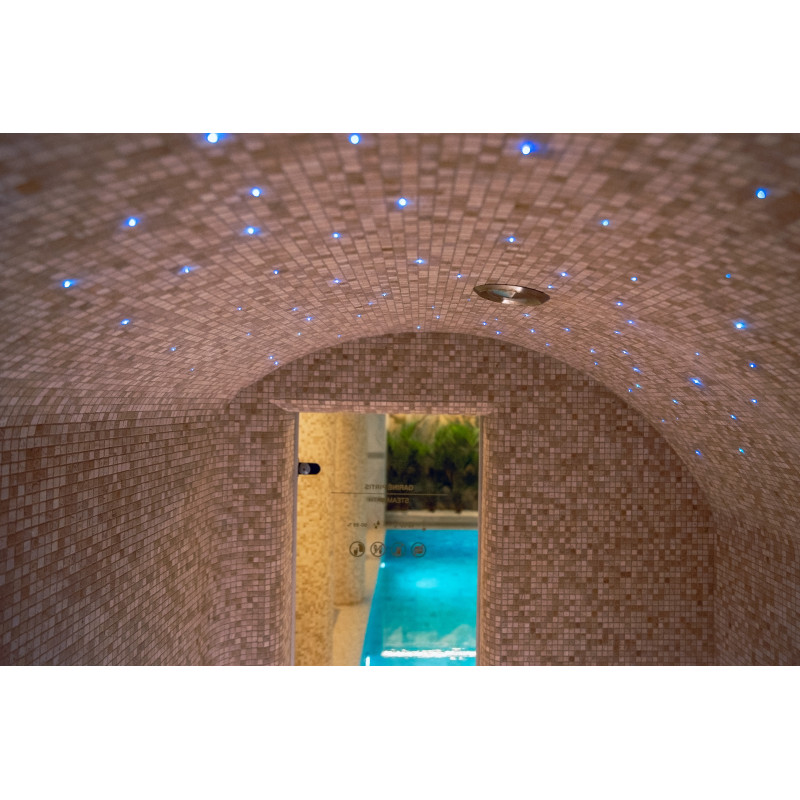 Anläggningen inkluderar ett ångbad, en bastu, en isgenerator och en pool med massagestråle och bubbelpool.