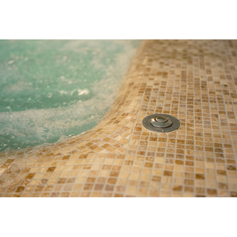 Poolen är utrustad med en Taifun Duo simjet, komplett med pump, ledstång, rör och pneumatisk styrning.