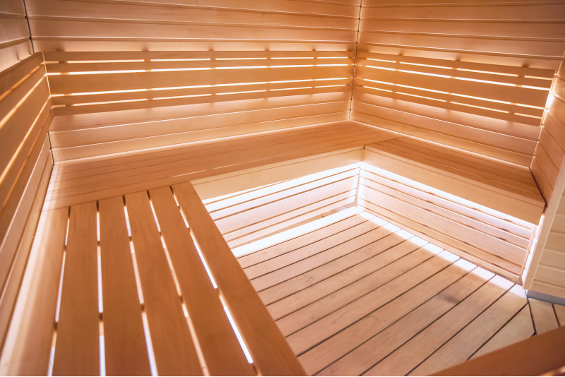 Lindträ av typ A användes för bastubäddar, ryggstöd, bastutak och väggpaneler. Golvgallret är av svart alträ.