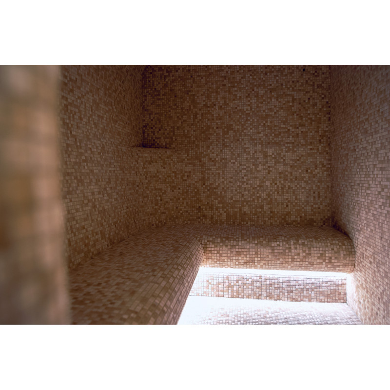 De inre ytorna är gjutna av expanderad polystyren med hjälp av kontinuerligt skuren XPS-styren. En takbåge bildas. Mosaikplattor utlagda. Ett ventilationssystem är installerat.