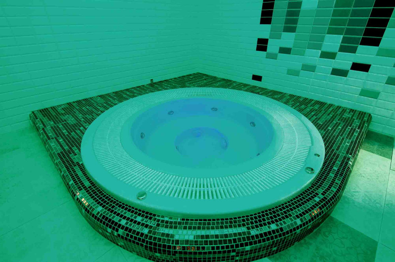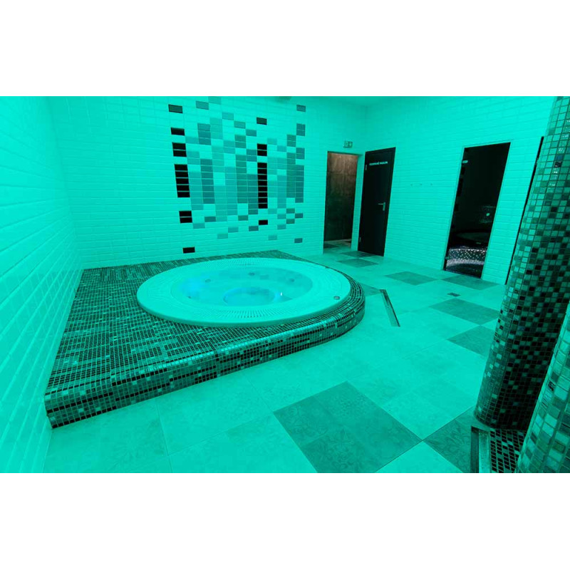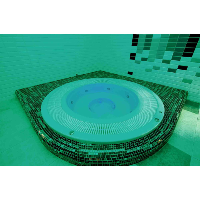 Hydromassagepool - kommersiell. Kakel runt poolen - glasmosaik. Utrustning: