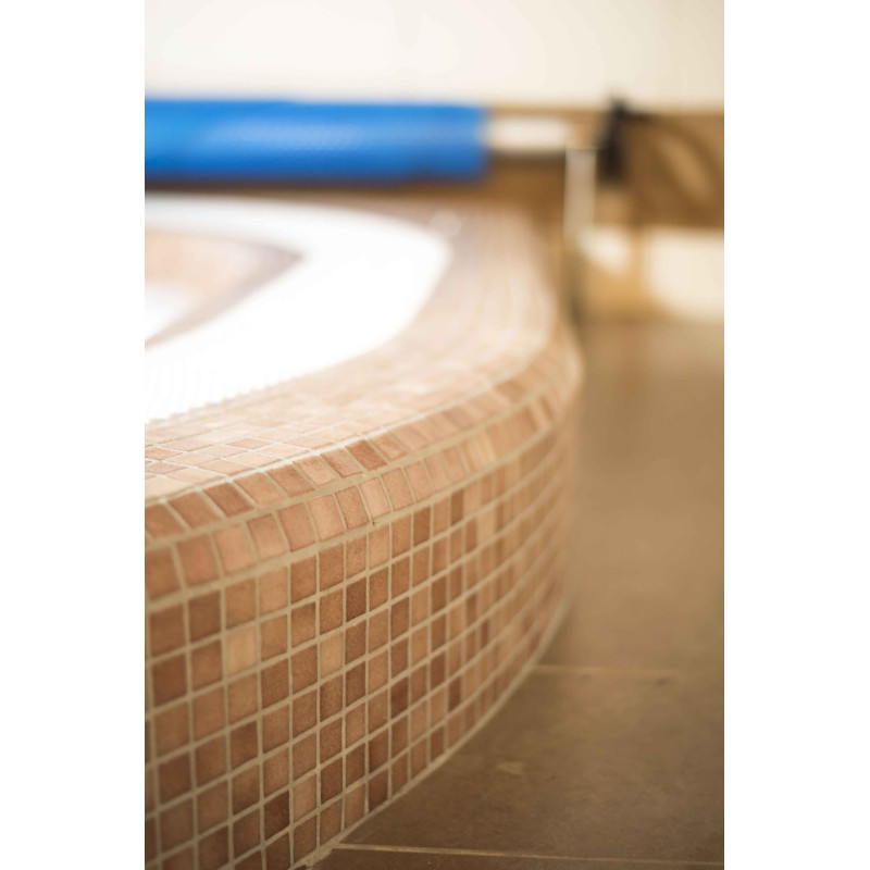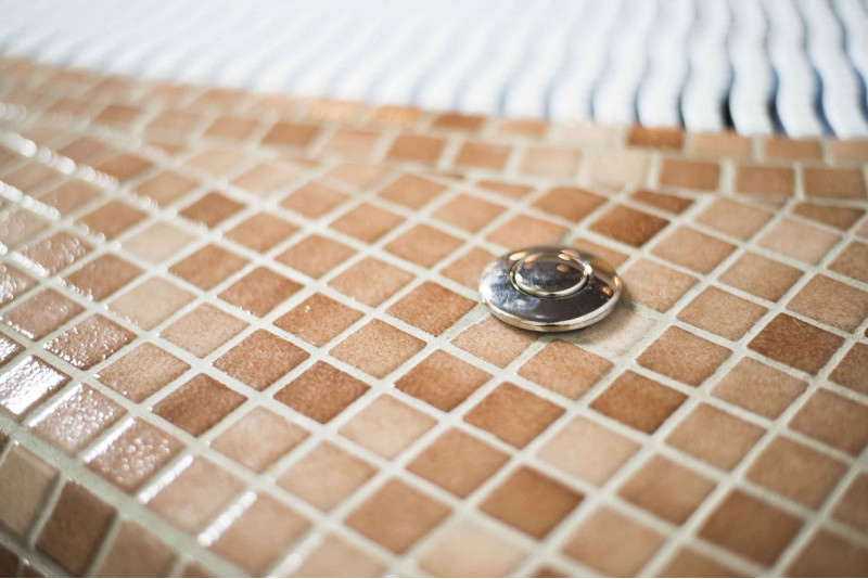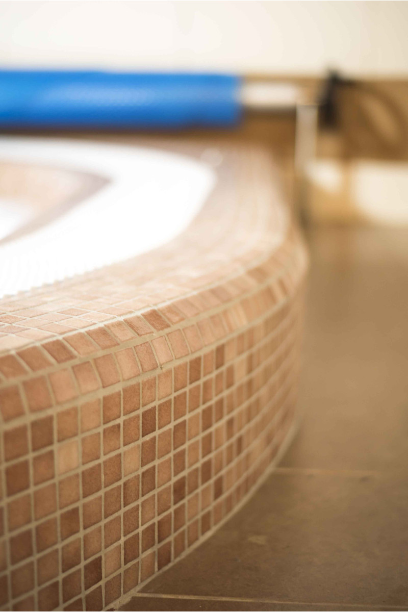 - Kakel - insidan och utsidan av poolen är täckta med neutral färgad mosaik av krossat glas.
