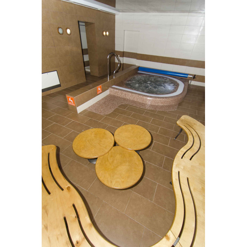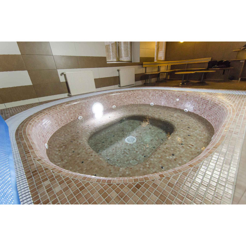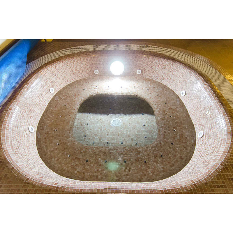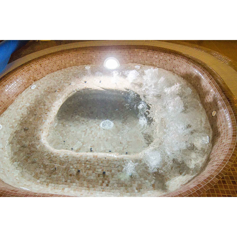 Formerna för bubbelpoolen är gjorda av speciell extruderad polystyren, enligt individuell beställning. Poolen kan ta emot många personer samtidigt, eftersom sittplatser ordnas runt hela poolen.